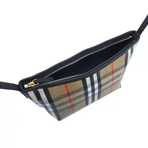 BURBERRY Vintage 格紋及皮革翻蓋斜背包 (黑色)