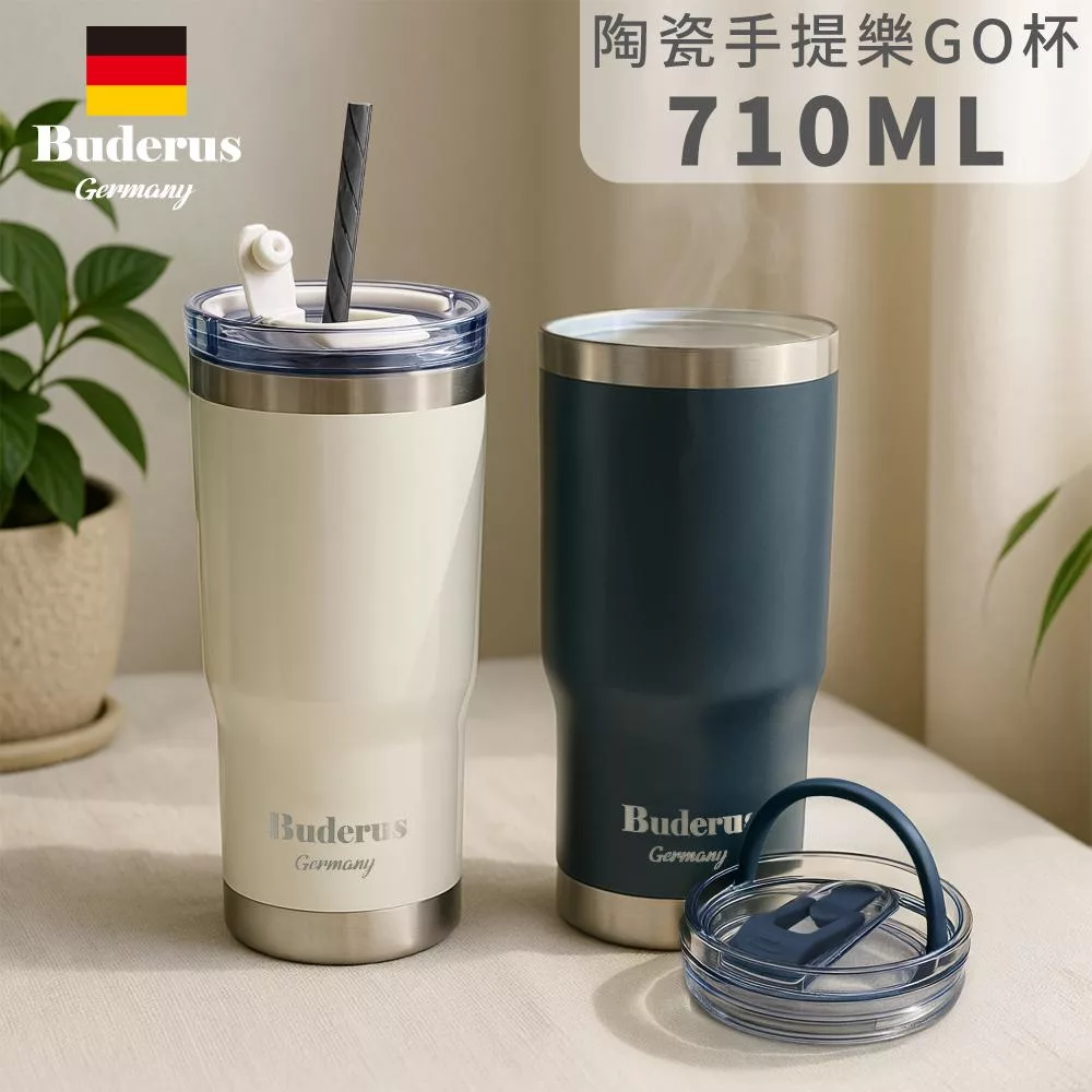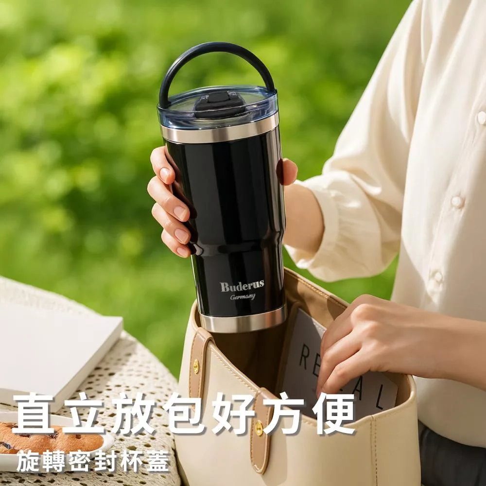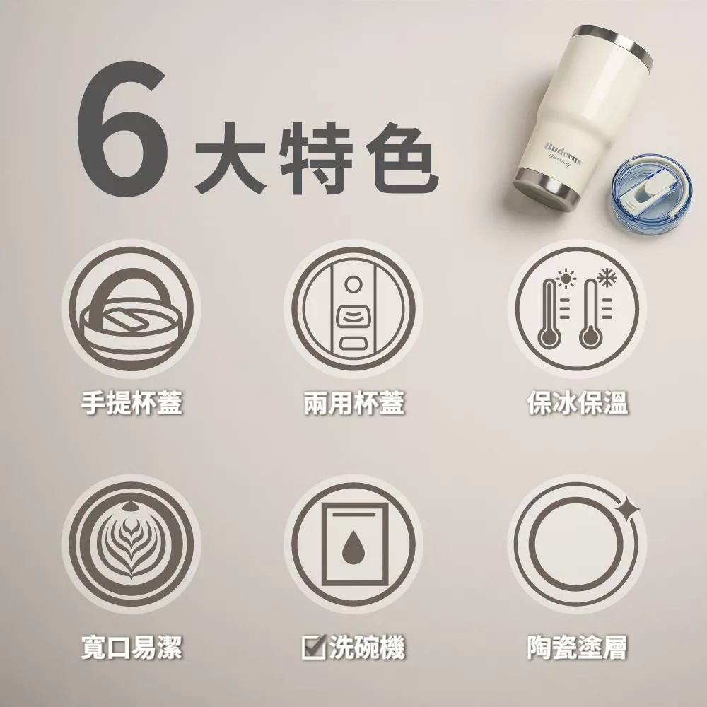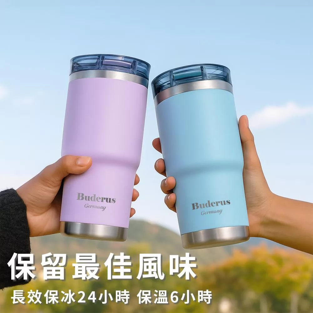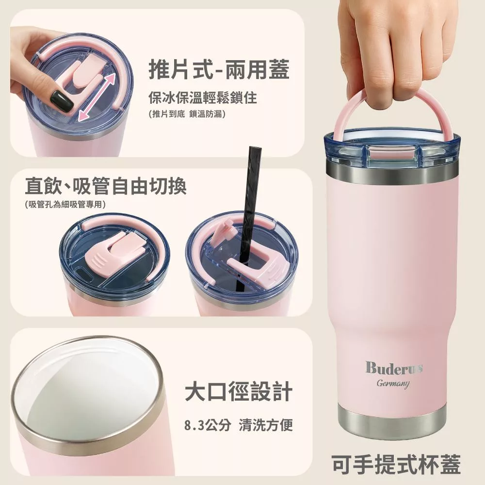買一送一【BLACK HAMMER】鈦芯涼不鏽鋼保溫保冰吸管杯860ml 加碼贈杯刷(顏色隨機x1)