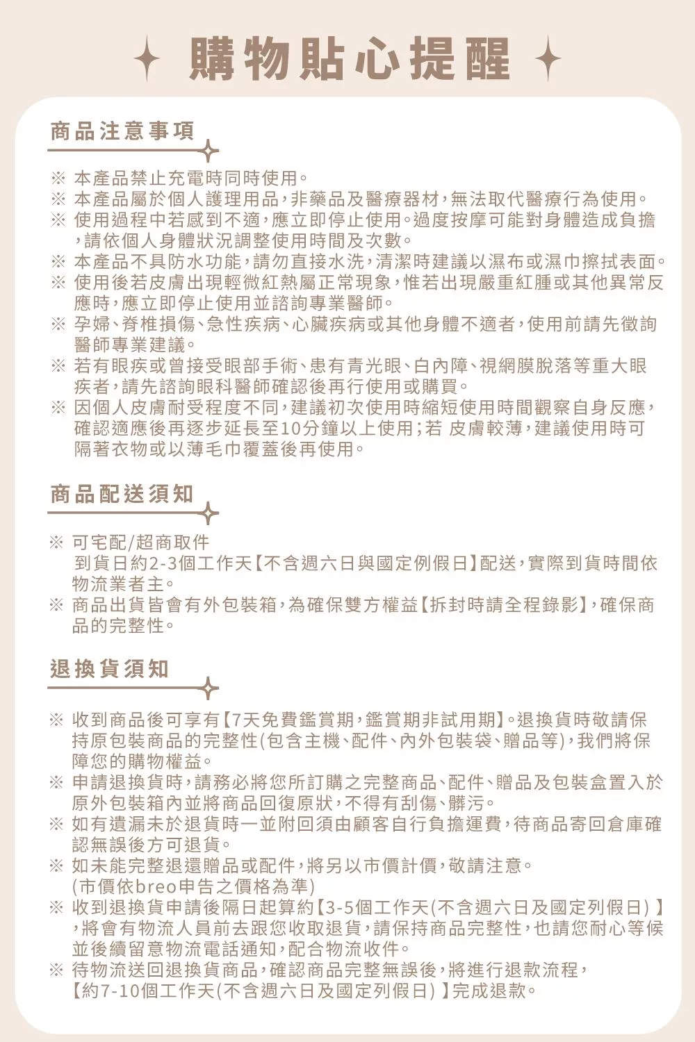 非屬上列品項之商品均享有到貨十天的猶豫期(含例假日)。退回之商品必須於猶豫期內寄回。