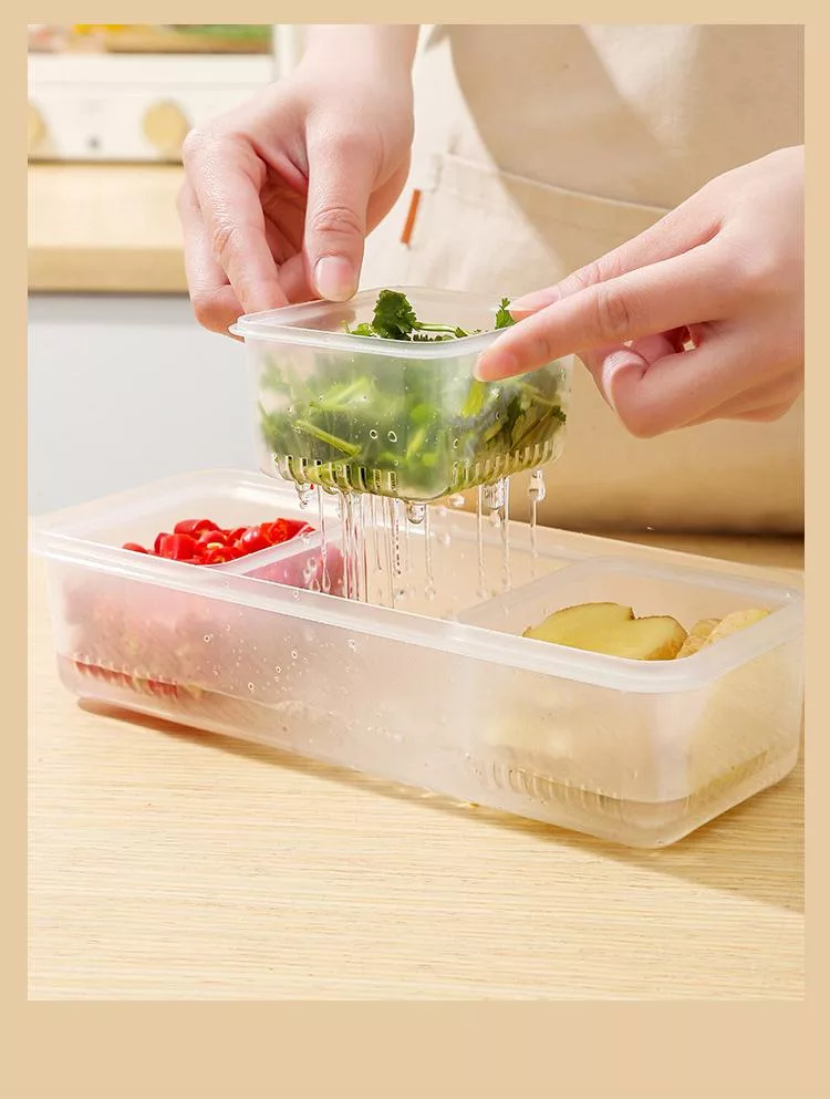 【日本NAKAYA】日本製造可瀝水雙層收納保鮮盒1100ml