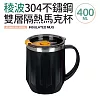 【Quasi】稜波304不鏽鋼雙層隔熱馬克杯(附蓋) 墨黑