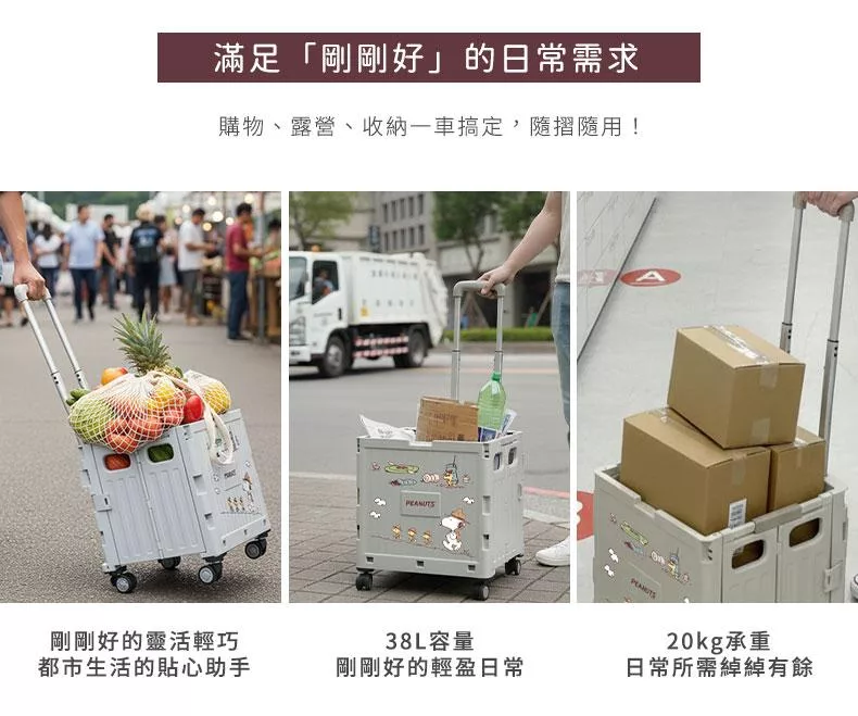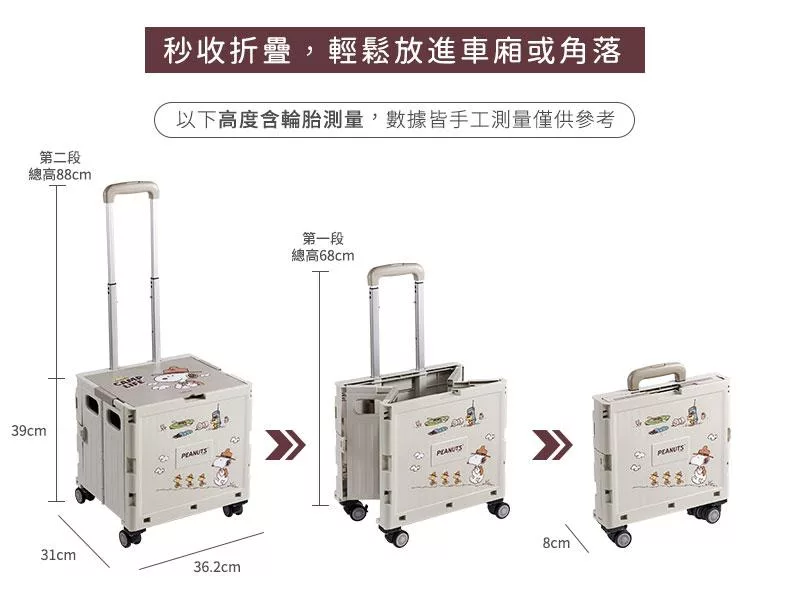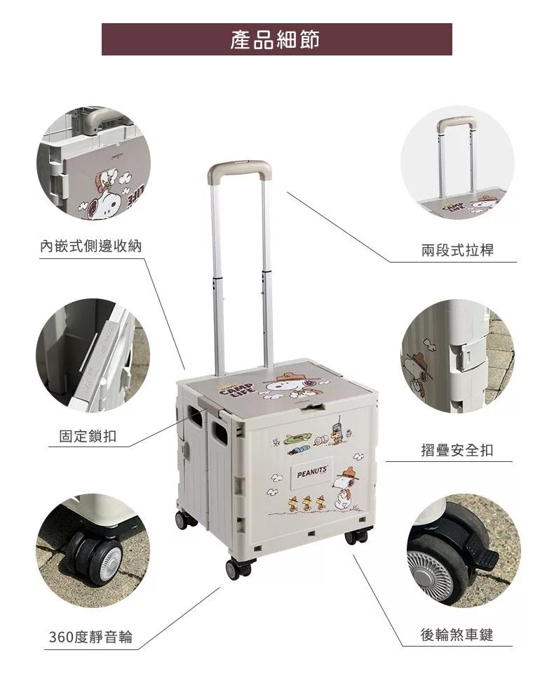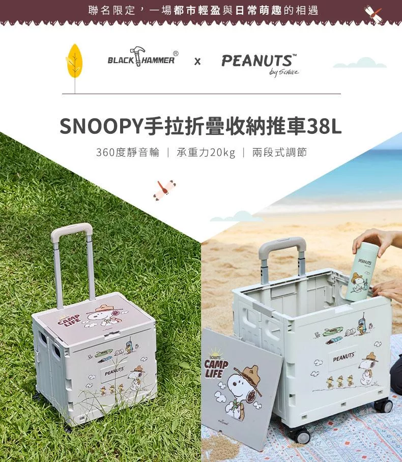【BLACK HAMMER】SNOOPY史努比手拉折疊收納推車38L