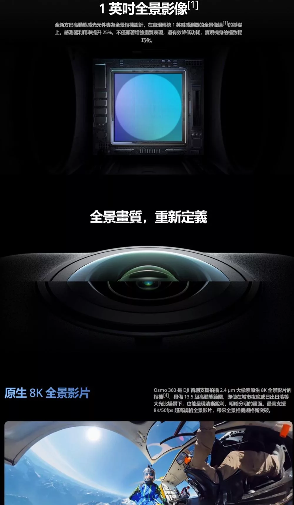 DJI OSMO 360 標準套裝 全景運動相機/攝影機/1"CMOS/內建105G