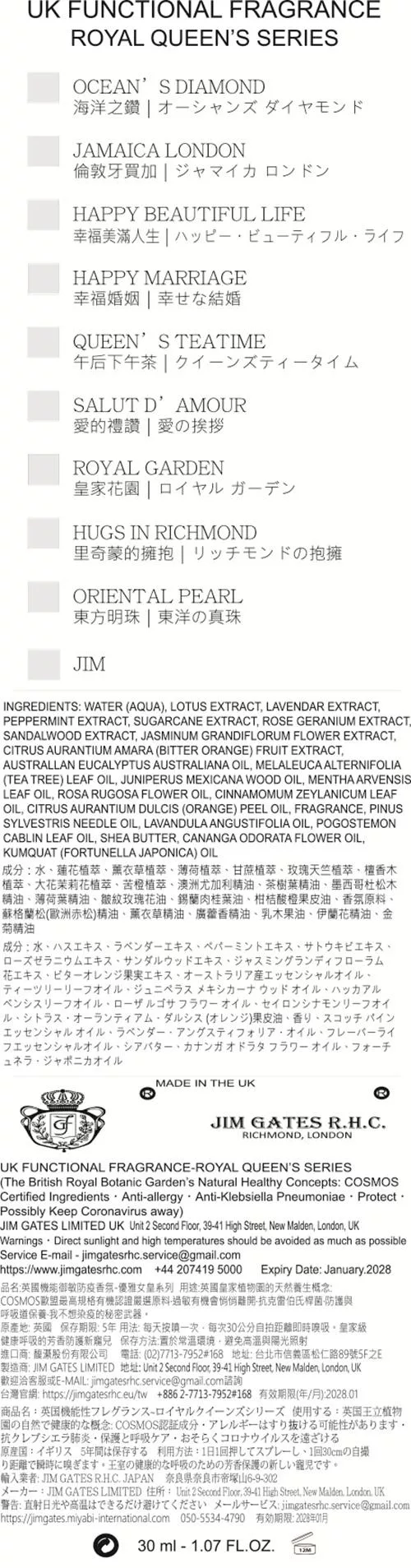 【U】【JIM GATES R.H.C.】- 英國全方位奢華逆齡香氛指緣玉手霜-幸福美滿人生