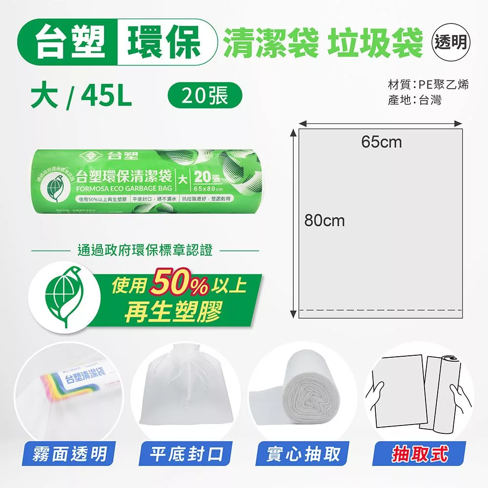 台塑 環保 清潔袋 垃圾袋 (大) (透明) (45L) (65*80cm) X 30捲