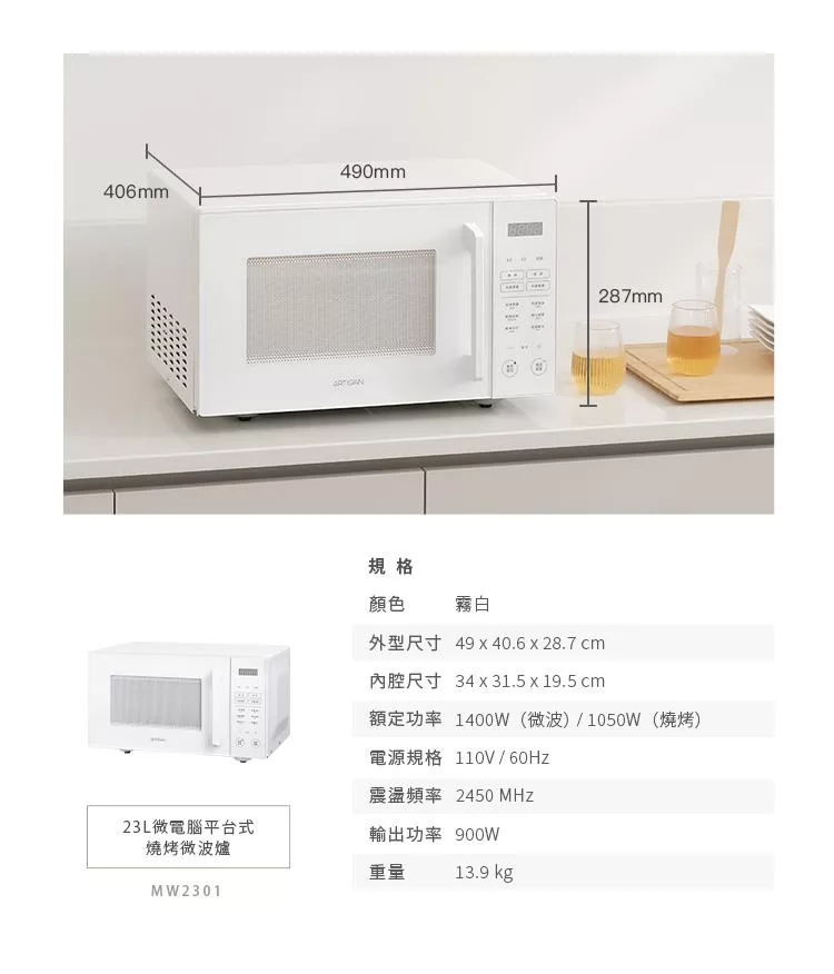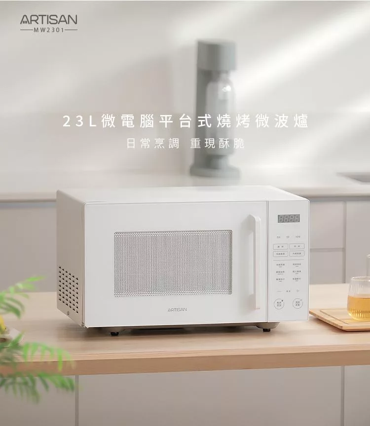 【贈果汁機】ARTISAN 23L微電腦平台式燒烤微波爐MW2301