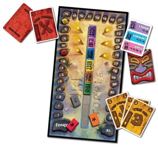 歡迎來到提基島,該處為九座鮮豔雕像之故鄉,那些雕像都正在競逐成為玻里尼西亞人心中最棒的偶像!在這款步調快速的策略遊戲中,你得打出正確組合的行動卡,盡量讓你秘密支持的提基排到隊伍的最前面,使用"提基向上"卡來讓一座提基雕像移動到最前面;"推倒提基"會讓對手的提基滾到最後面,但是要小心"提基焚毀"卡,它會讓你的提基離開遊戲板。你得獲得最多分數才能自稱為提基大師。