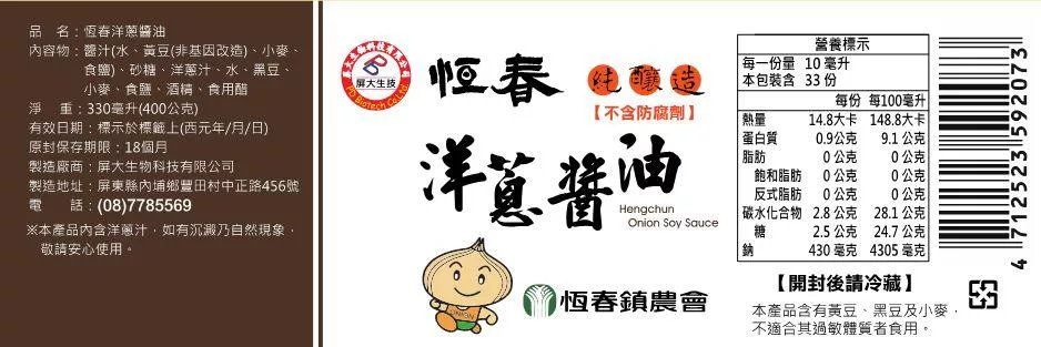 健康:使用 恆春洋蔥,不加:鉀鹽、焦糖色素、防腐劑
