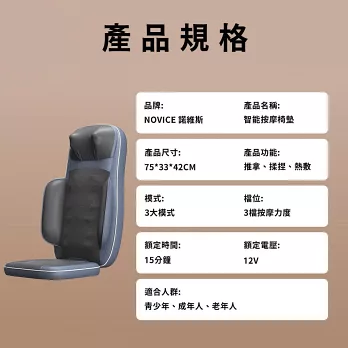 【NOVOICE 諾維斯】旗艦款全自動背部五點按摩熱敷椅墊SB-A11