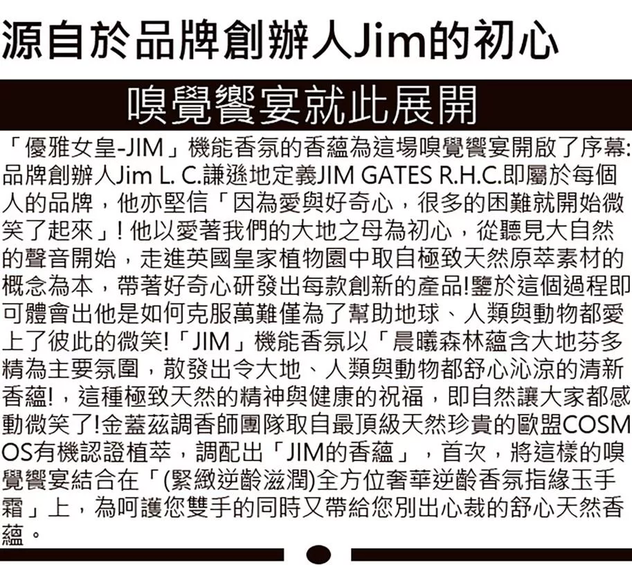 【U】【JIM GATES R.H.C.】- 英國全方位奢華逆齡香氛指緣玉手霜-幸福美滿人生
