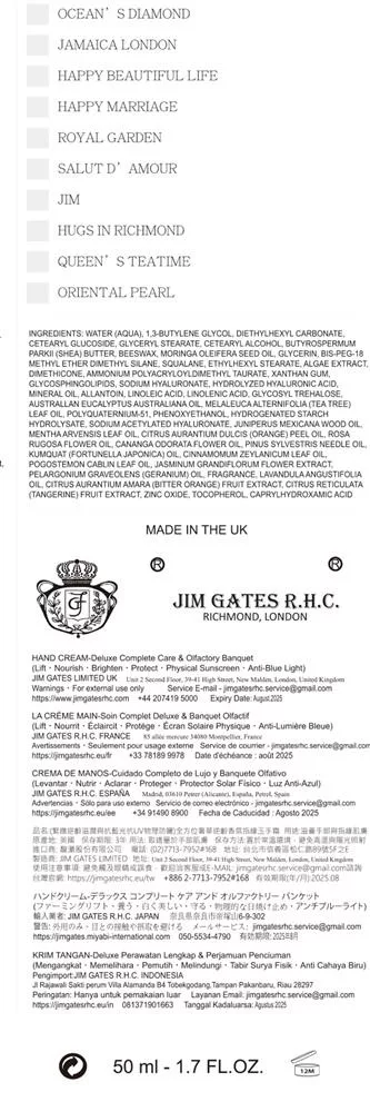 【U】【JIM GATES R.H.C.】- 英國全方位奢華逆齡香氛指緣玉手霜-幸福美滿人生