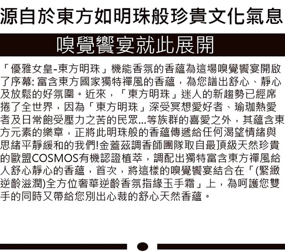 2.顛覆您對護手霜的油膩不適感,獨家專研技術給您不油膩又快速吸收的呵護
