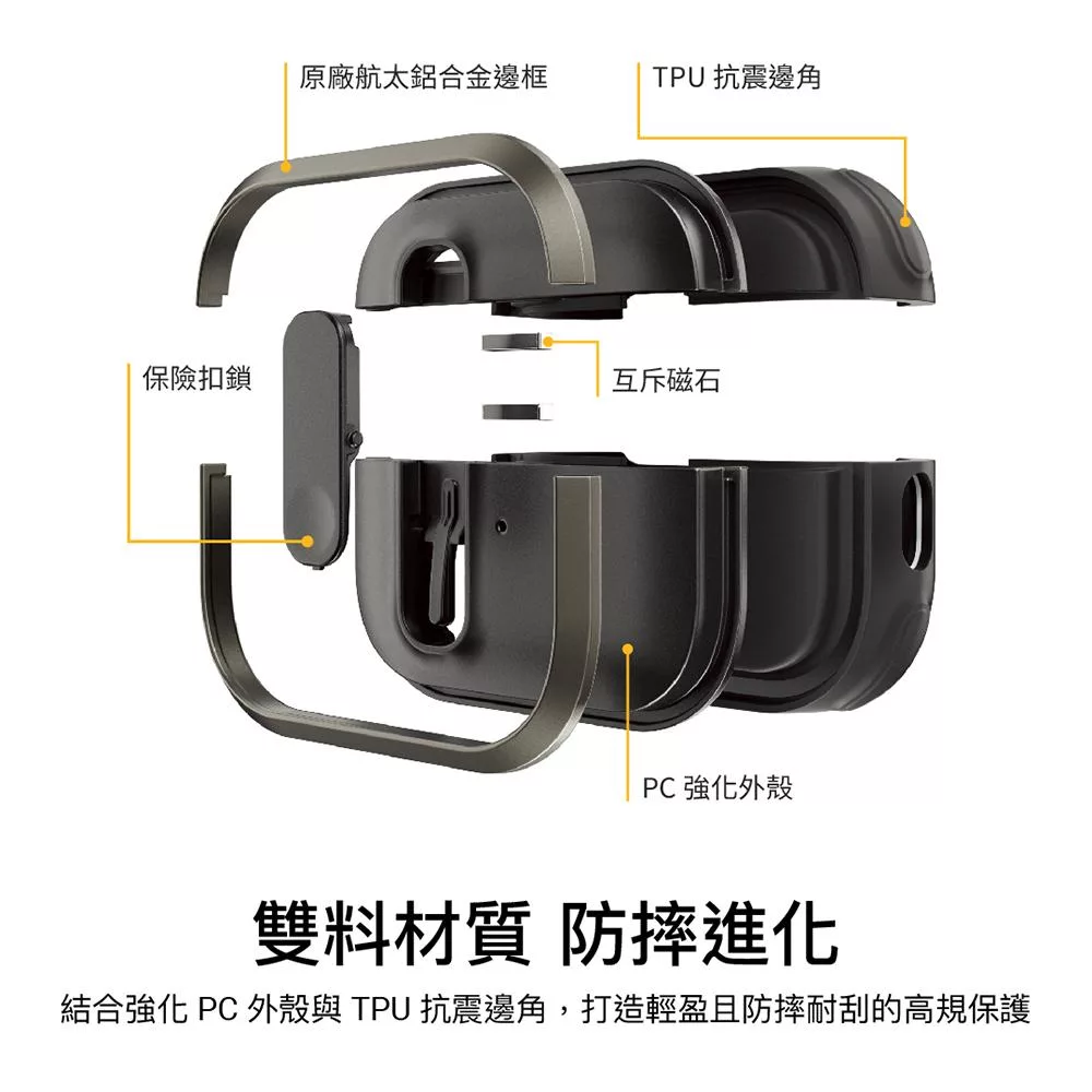 內容物:Odyssey 抗衝擊磁扣耳機殼x1, 15mm 手腕繩x1, 金屬扣環x1