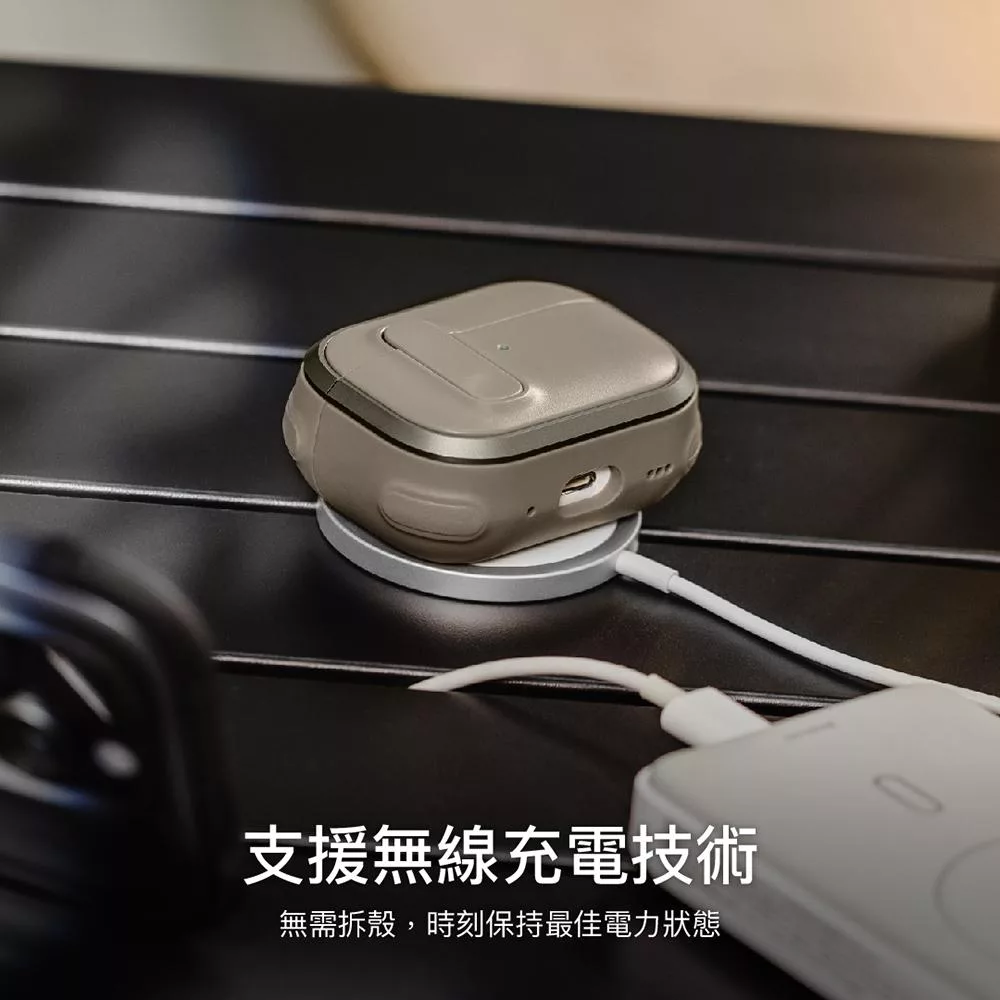 UNIQ AirPods 4 Lyden Ds 耐刮皮革收納保護套 附掛繩 灰色