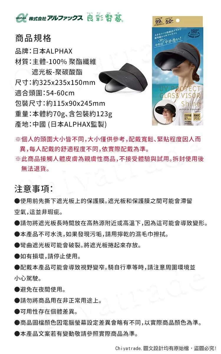 ※此商品遮陽板上有保護膜,撕掉使用後無法退貨。