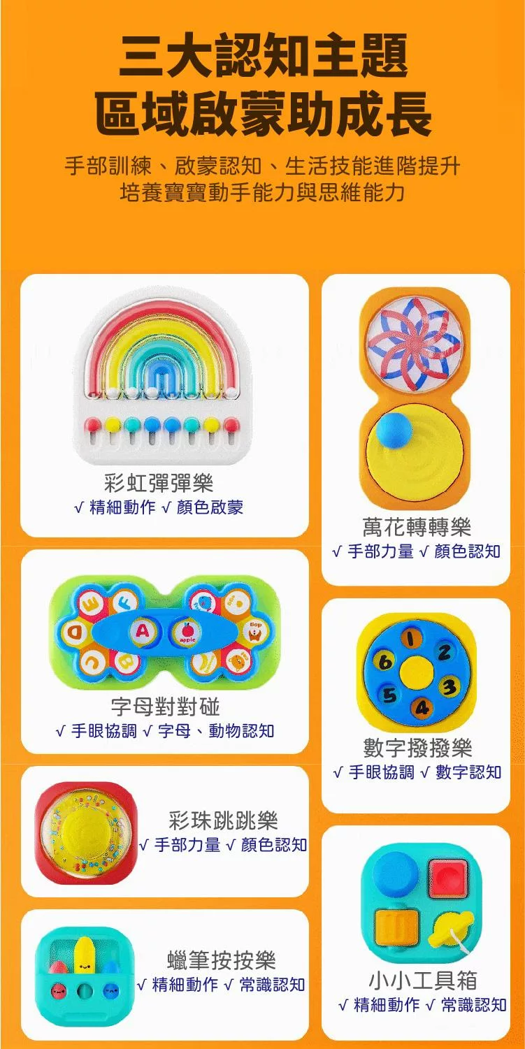 ➤三大認知一次玩:顏色、數字字母、生活常識整合,不用分開買