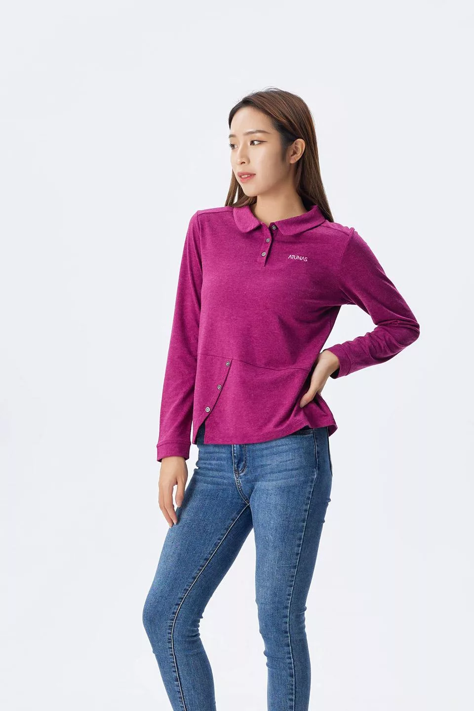 ADISI 女半門襟動態保暖快乾上衣 AL2421086 (S-2XL)|磨毛 鬆餅紋 抗靜電 彈性 吸濕 速乾 S 薰衣紫