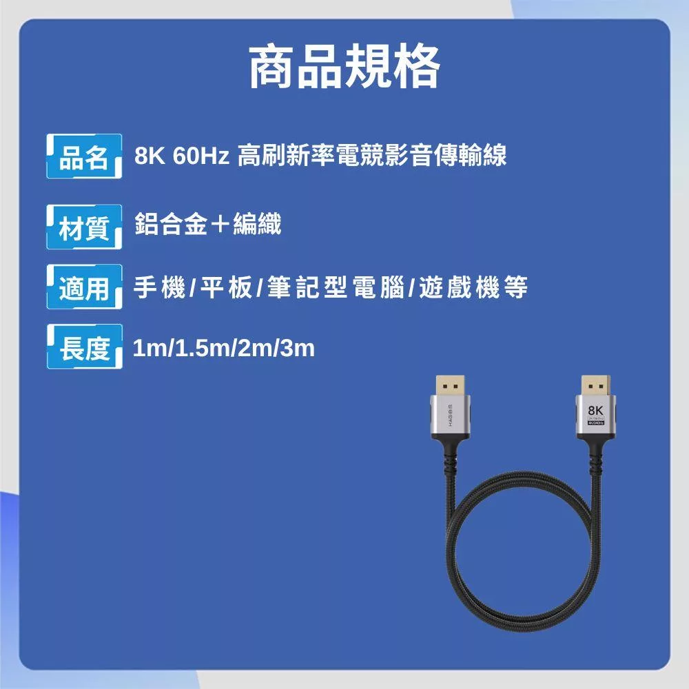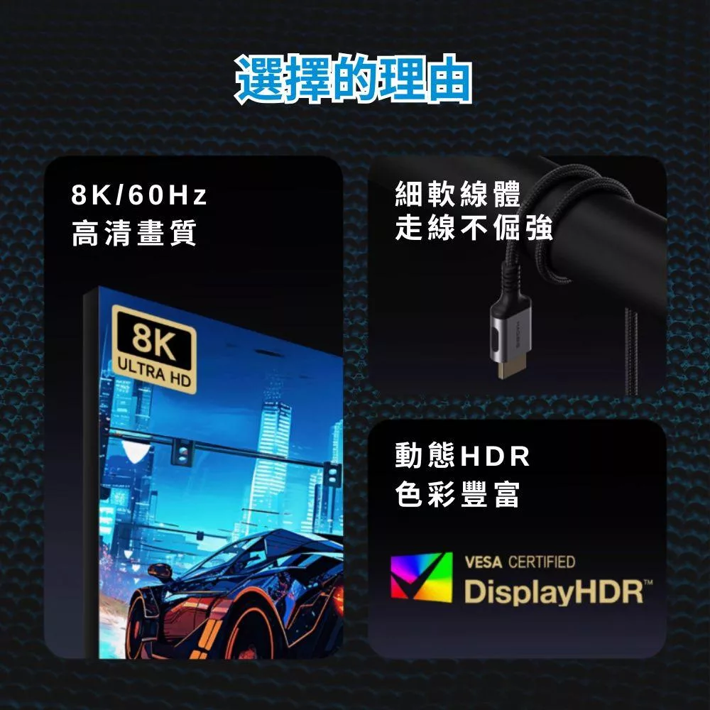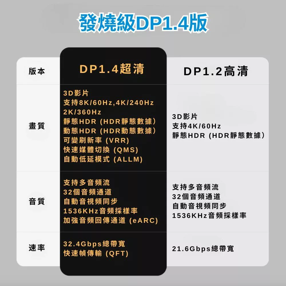 DP 1.4線, 8K線, 4K 240Hz,2K 360Hz, 高刷新率, 電競線, HDR, 細軟線, 高清線, 顯