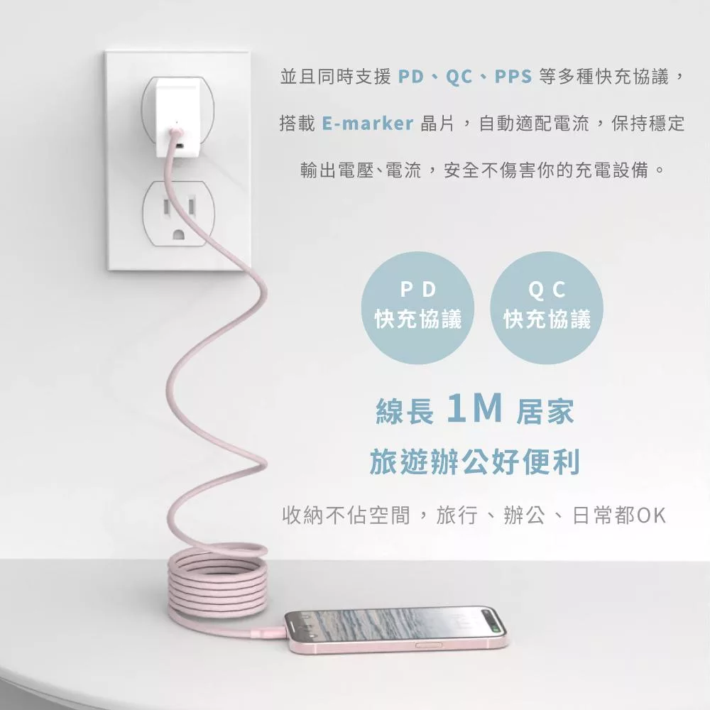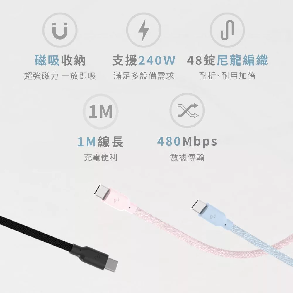 POLYWELL 寶利威爾 100公分 PW15-W45-N013 USB3.2 USB-C 公對母 延長線 Gen2 10G 100W 黑金剛 1M