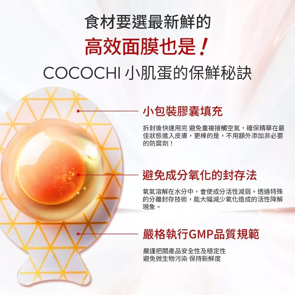 3. 1顆小肌蛋面膜就能取代化妝水、精華、乳液等5大步驟,懶人保養也能輕鬆獲得水嫩美肌。