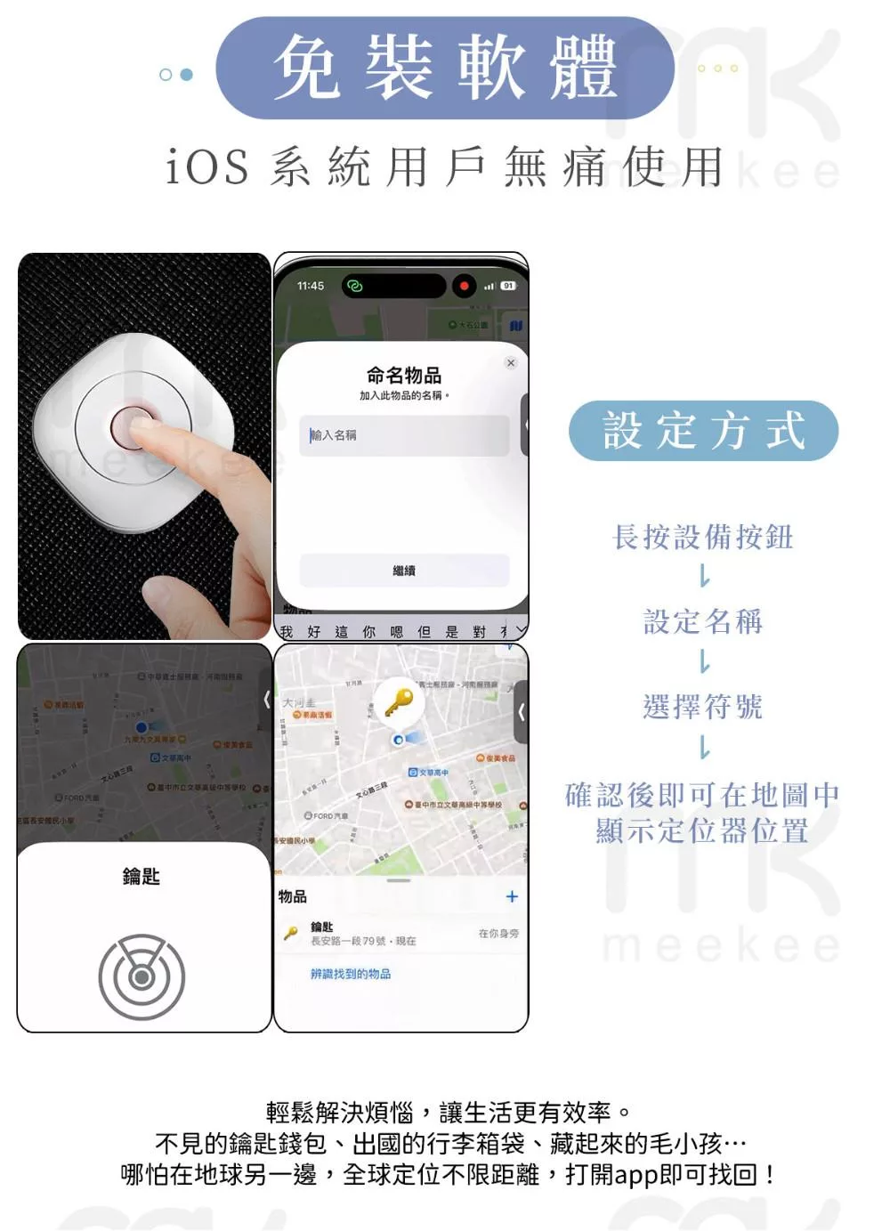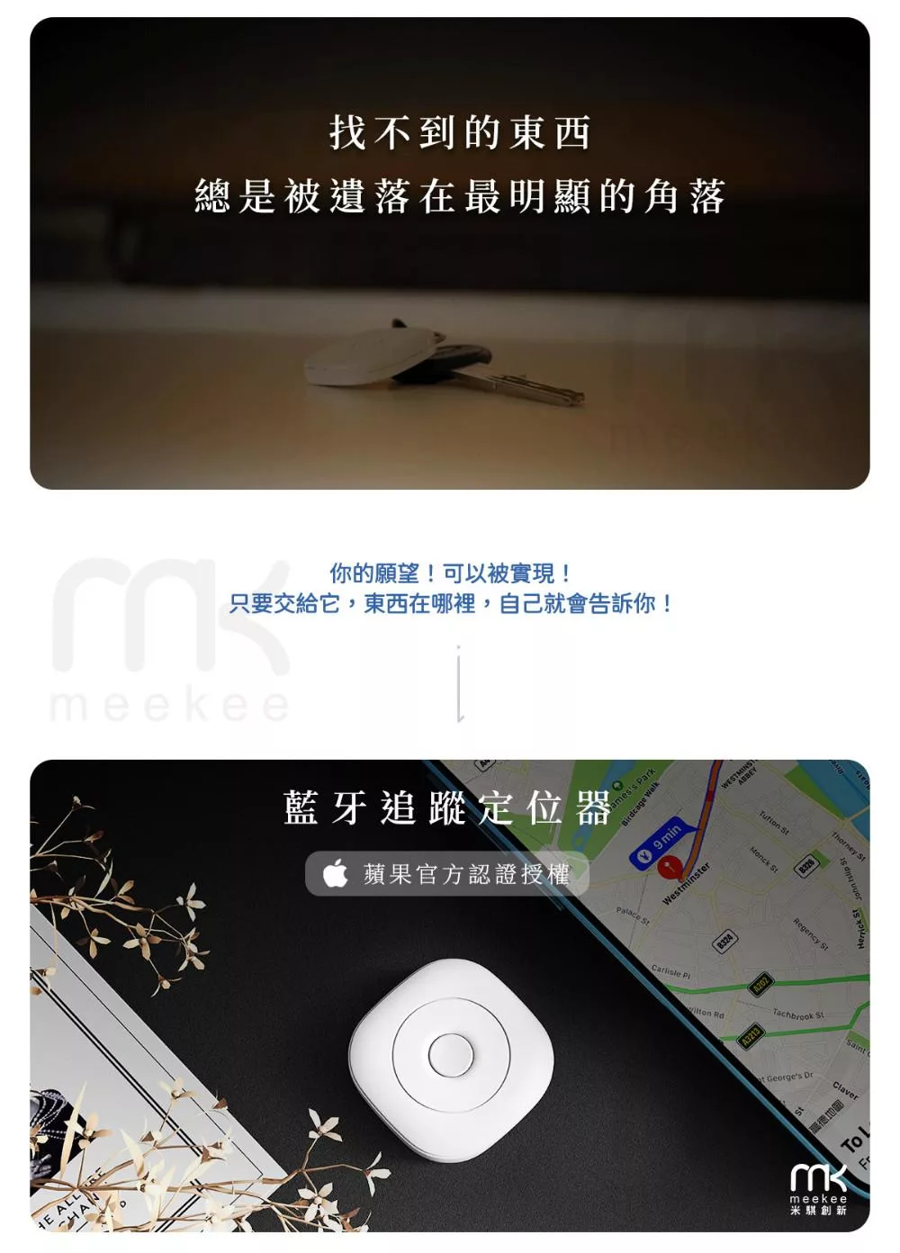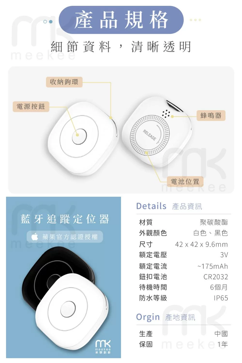meekee 藍牙追蹤定位器 (蘋果認證) 2入組 白色