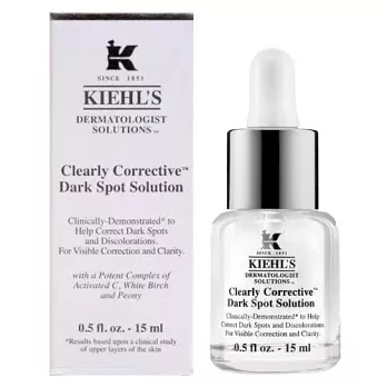 產品特色 預防斑點形成水亮保濕肌膚 產品介紹 有效抑制並改善斑點、淡化痘疤、痘痘瑕疵,改善膚色不均與皮膚暗沉水潤質地,清爽好吸收 規格 品牌:KIEHLS 契爾氏 英文品名:KIEHLS Dermatologist Solutions Clearly Corrective Dark Spot Solution 15ml 規格(單位):瓶 產地:美國 成分:依外盒INGREDIENTS英文標示顯示 容量:15ml 保存方法:請置於陰涼處,請勿直接陽光照射,以免變質 注意事項:使用後如有不適,請立即停用或洽專業醫生 注意事項 1. 本產品屬私人消耗產品,已拆封或使用過,無法恢復原狀,商品外盒損壞等恕無法辦理退貨 2. 使用後如有不適或遇敏,請立即停用或洽專業醫生 3. 退貨時請務必附回完整商品、贈品,包裝外袋均齊全 4. 因電腦螢幕呈現及個人觀感差異,本賣場之商品圖僅供參考,以收到實際商品為準由於產品為平行輸入正品,不同批號產地不同,具體產地以收到實際商品為主