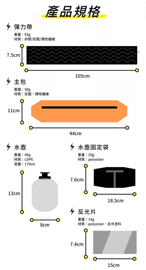 ARKY 閃電運動腰包(單車/路跑/馬拉松)簡配版+贈超輕量口袋運動水壺 懷卡托黃