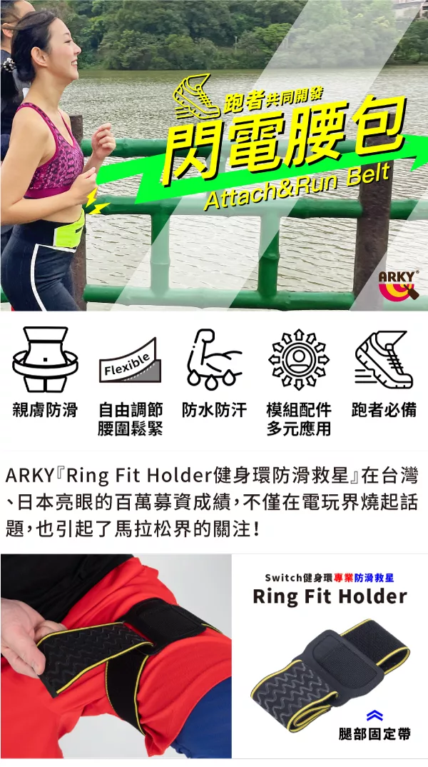 ARKY 閃電運動腰包(單車/路跑/馬拉松)簡配版+贈超輕量口袋運動水壺 紐西蘭黑