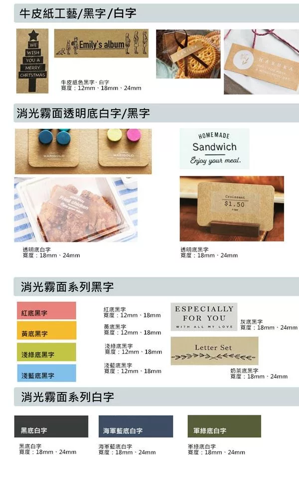 ◆ 可使用多種不同顏色/材質/寬度之標籤帶