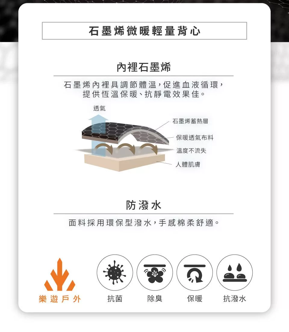 【ATUNAS 歐都納】男款石墨烯纖維輕量保暖背心/大尺碼/無厚重感/背心式外套A1VE2508M- M 黑