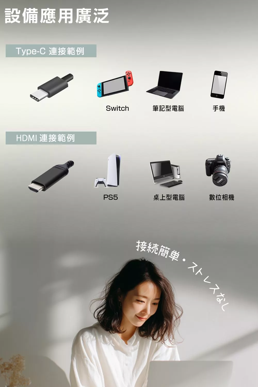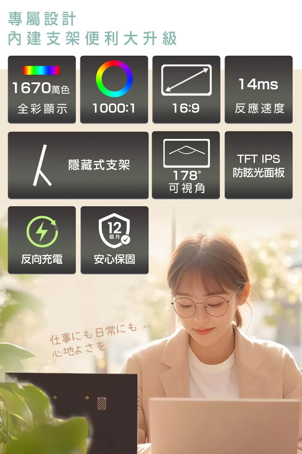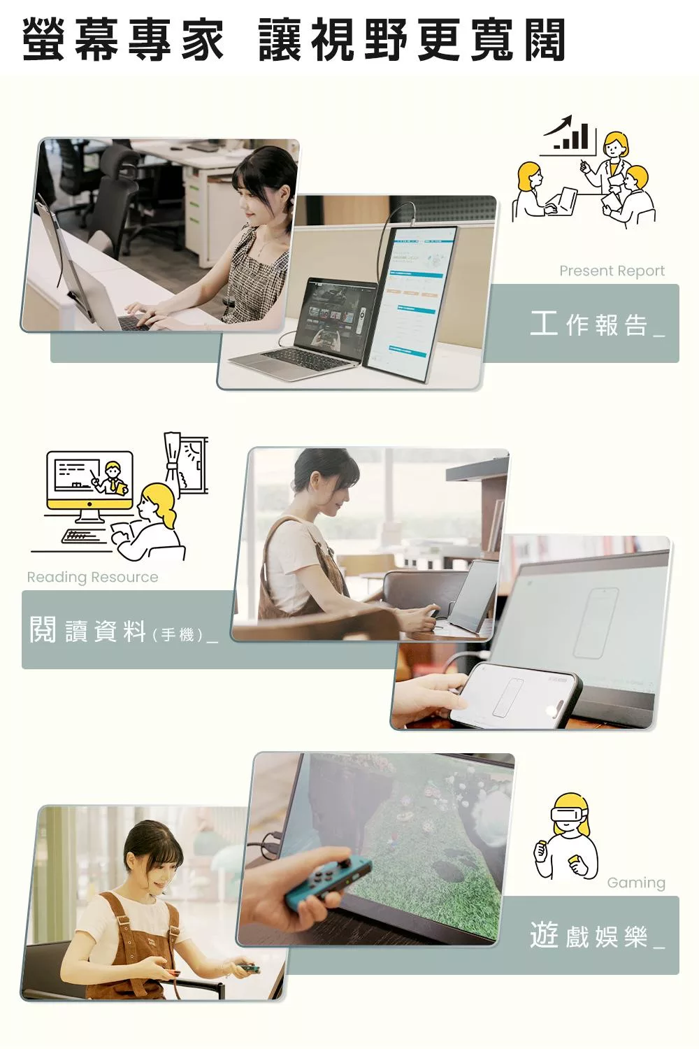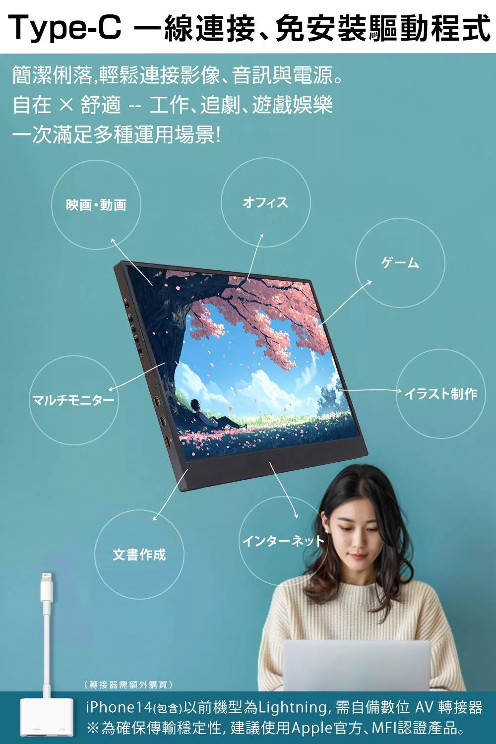 【REAICE】日本Winten 14吋IPS超薄可攜式L型外接螢幕(Switch可攜式螢幕/移動式/內建支架/HDMI/Type-C)