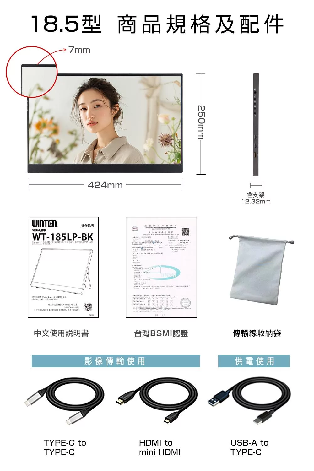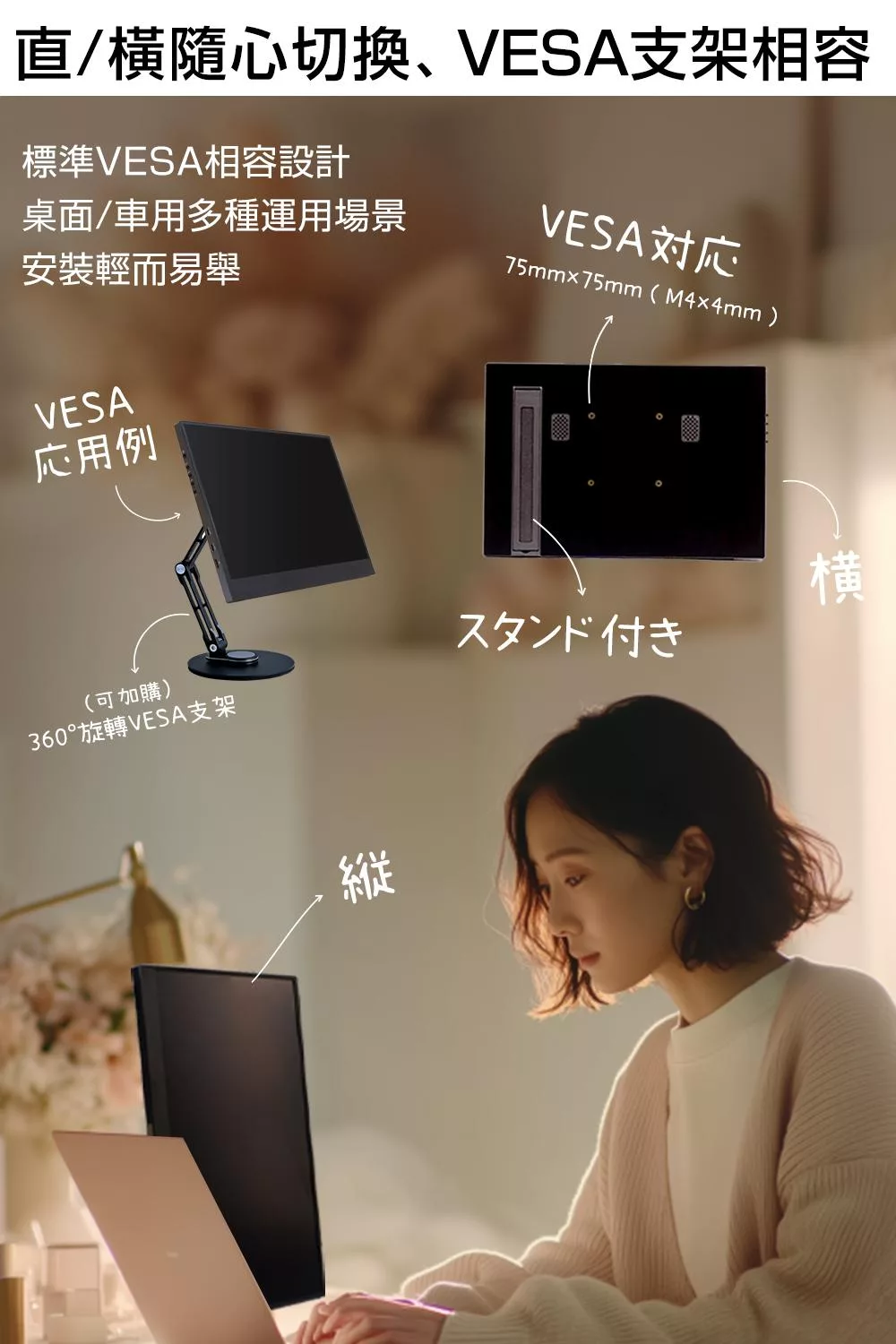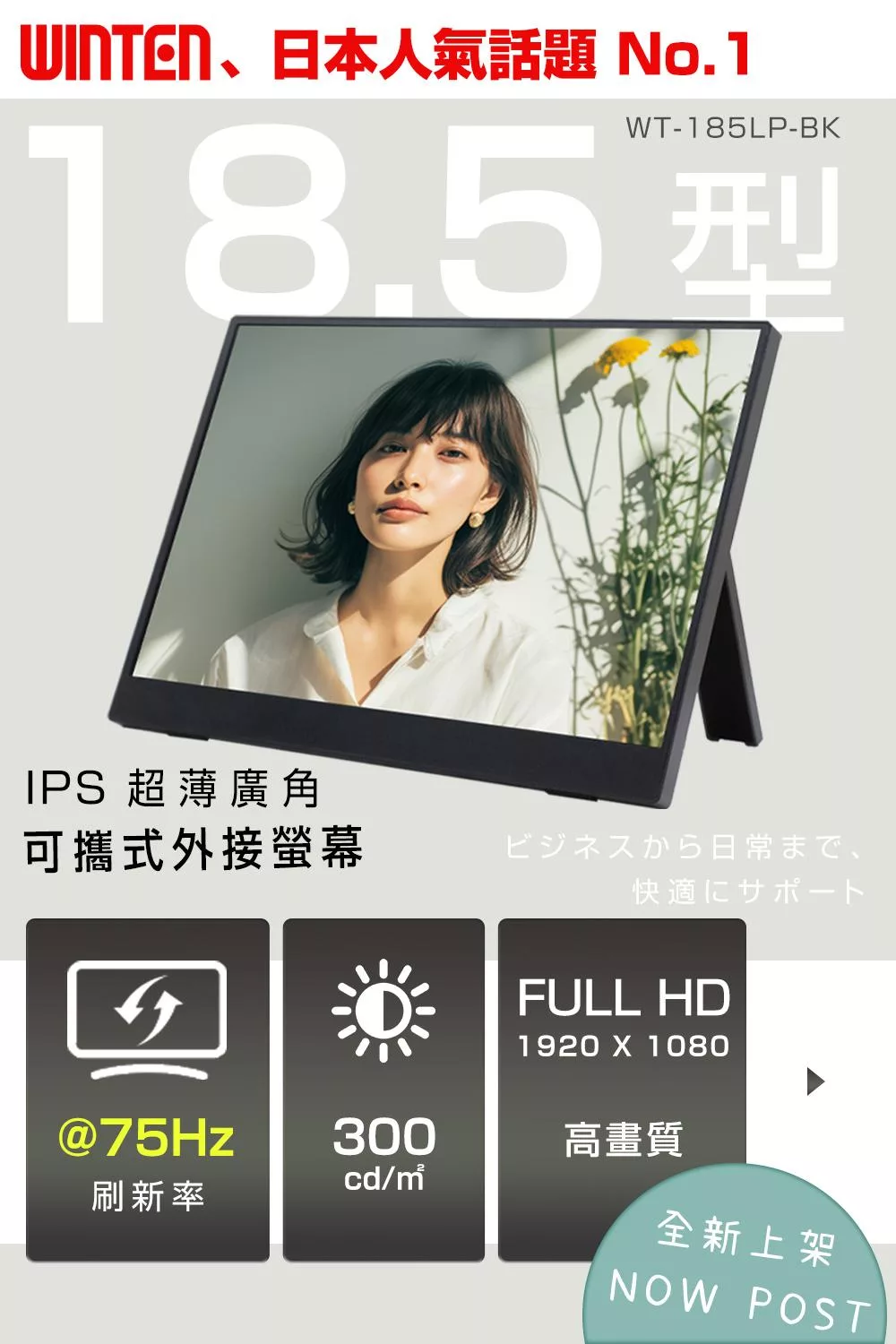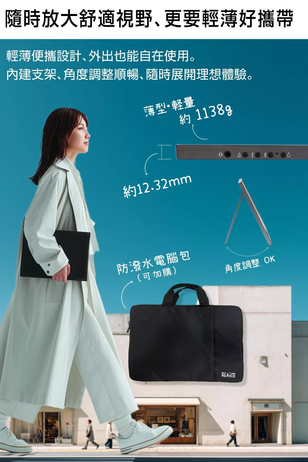 【REAICE】日本Winten 18.5吋IPS超薄可攜式L型外接螢幕-外出攜帶豪華組(VESA支架/Switch可攜式螢幕/移動式/FHD/HDMI/Type-C)