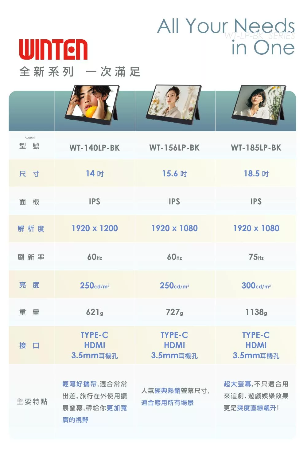 【REAICE】日本Winten 15.6型IPS超薄廣視角可攜式觸控螢幕(Switch外接螢幕/Type-C/可攜式螢幕/攜帶式電腦螢幕)