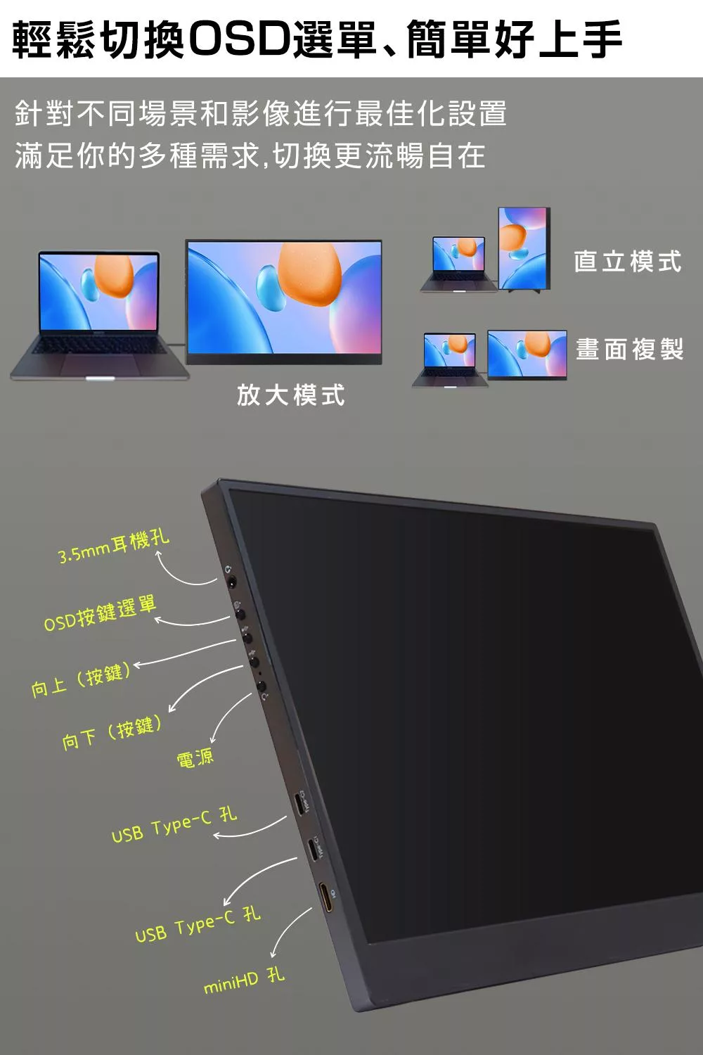 【REAICE】15.6型IPS超薄可攜式外接螢幕(Switch外接螢幕/Type-C/可攜式螢幕/攜帶式電腦螢幕) 15.6吋