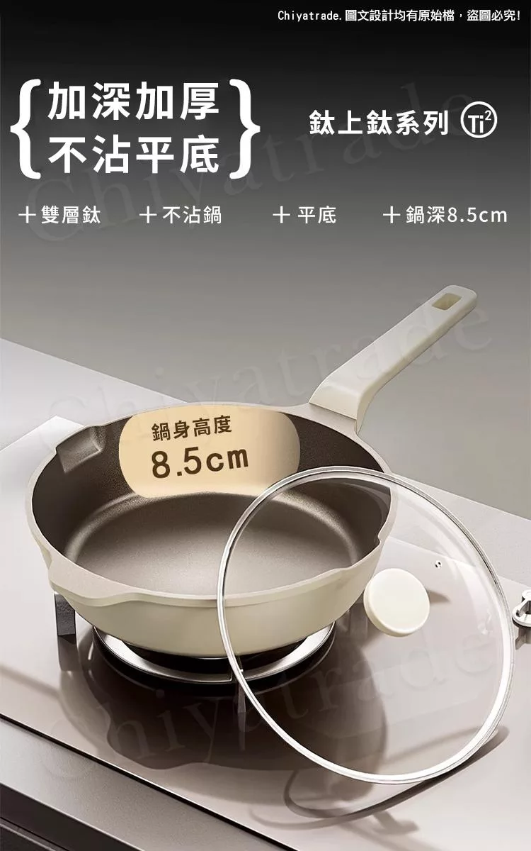 【鍋太后】無塗層不沾黏鈦鍋/鈦合金炒鍋/單柄帶蓋炒鍋-34cm