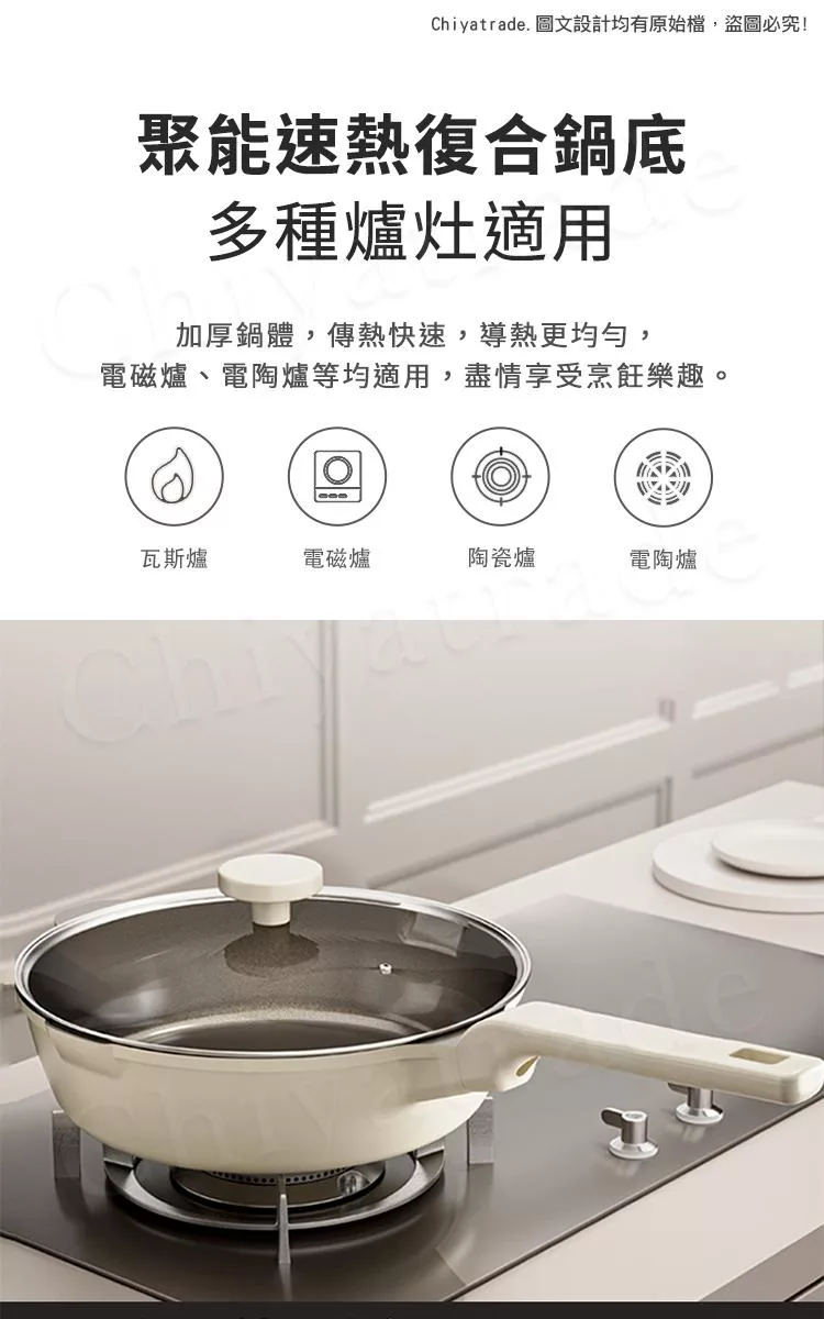 適應範圍:電磁爐、瓦斯爐、卡式爐、電陶爐、鹵素爐全適用