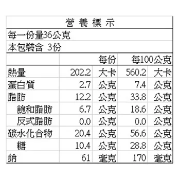 【過敏原】本產品含蛋類、麩質之穀物、奶類及其製品,特殊過敏體質者可能導致產生過敏症狀,消費者如對該成分過敏應仔細閱讀內容物標示。