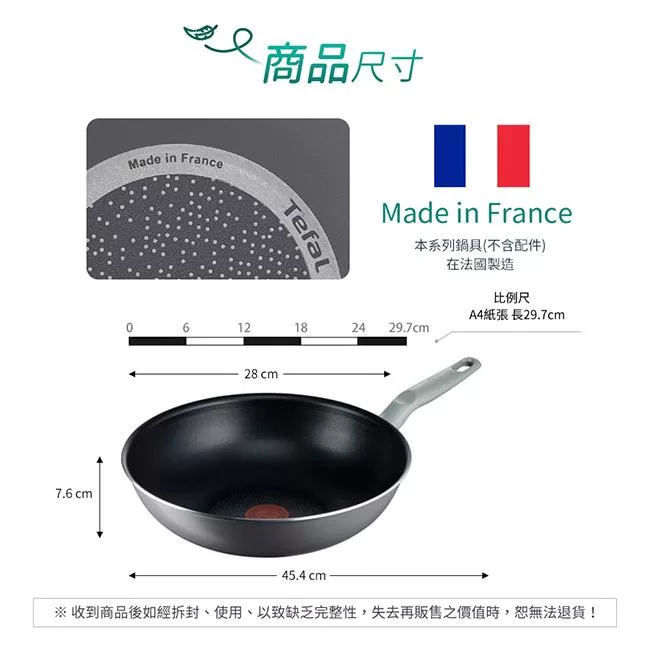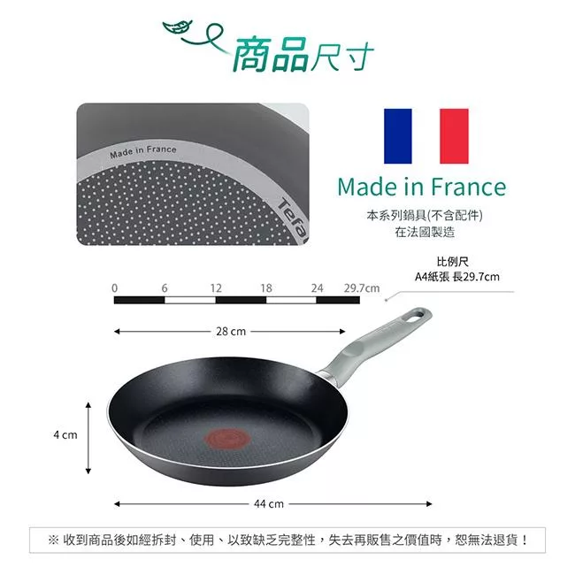 ◆尺寸:鍋具口徑28cm/鍋底直徑20.7cm/含鍋把總長44cm/鍋深4cm