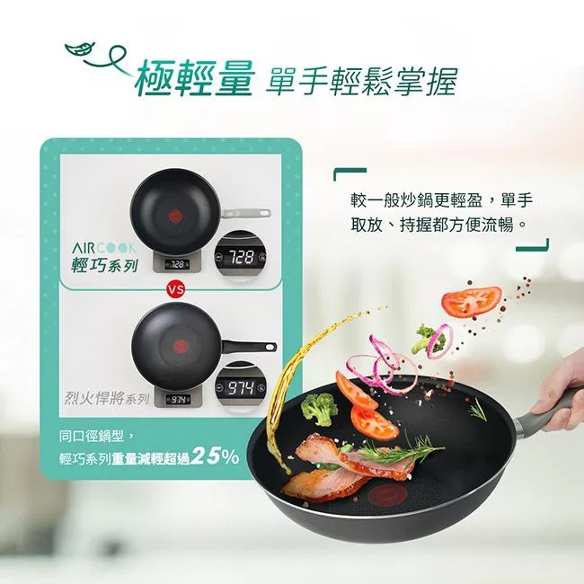 更輕巧的鍋具,帶來更完美的烹調效果!單手就能取放,省時省力,烹飪過程方便流暢,打造優雅煮食生活的廚伴首選。