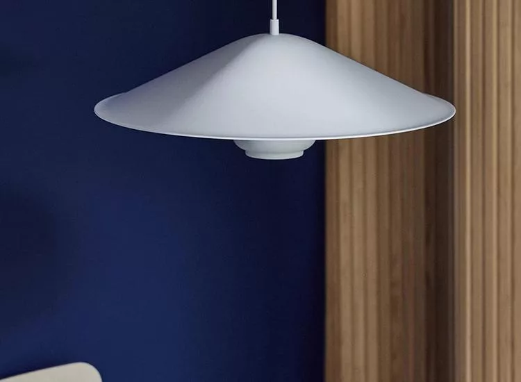 當 Kori 吊燈與優雅簡約的錐形燈罩結合後,光線也產生了顯著變化,除了向下投射美觀、防眩光的直接光源外,錐形燈罩能將柔和的間接光線均勻灑落於下方寬闊區域,這種雙重的光源效果,使得配備錐形燈罩的 Kori 吊燈,能成為適合餐桌或其他大型檯面使用的完美照明。