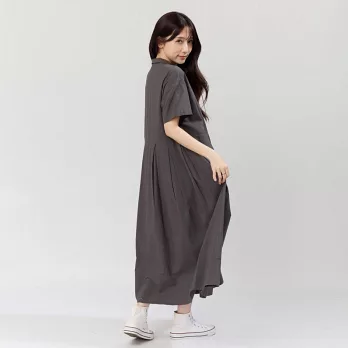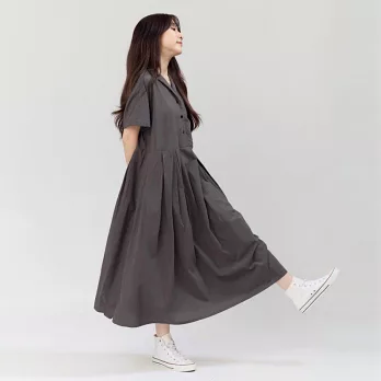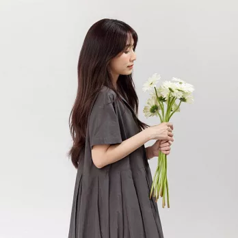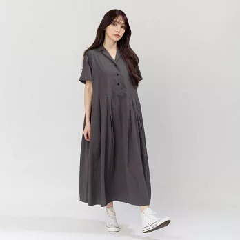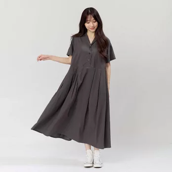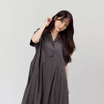 好我_Nicole有領短袖箱褶洋裝 4L-5L 墨灰