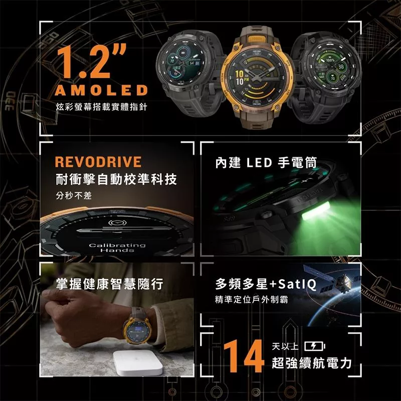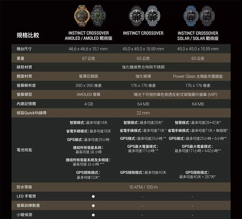GARMIN INSTINCT Crossover AMOLED 實體指針GPS智慧錶 45mm - 軍事戰術版 極致黑