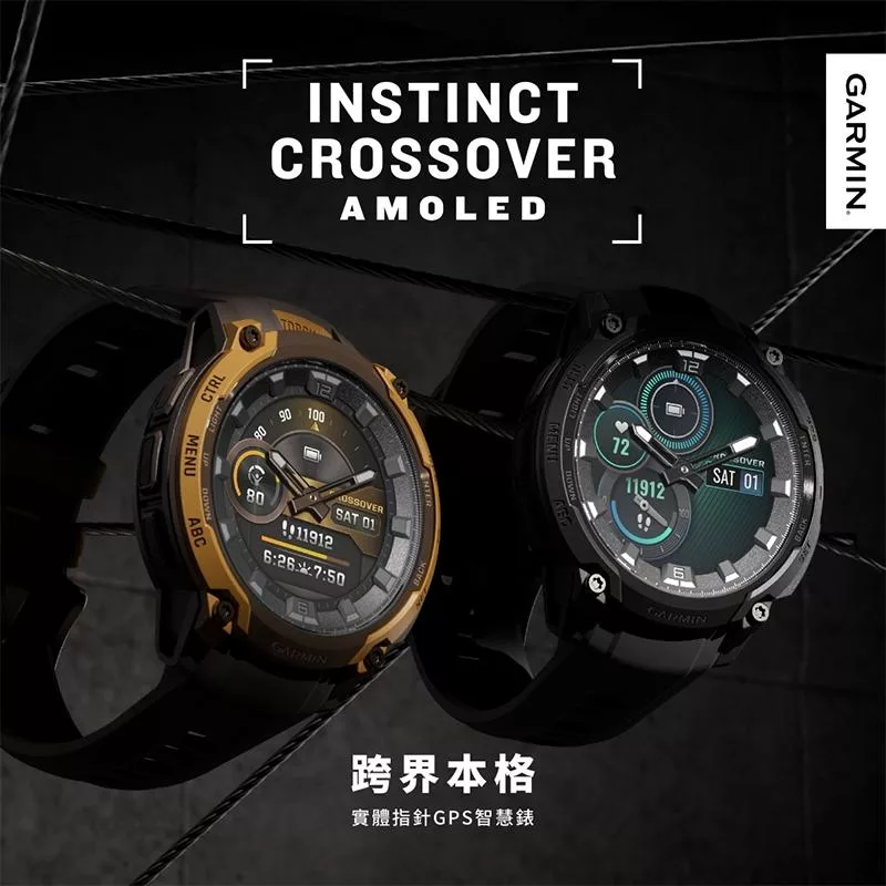 GARMIN INSTINCT Crossover AMOLED 實體指針GPS智慧錶 45mm 墨影灰