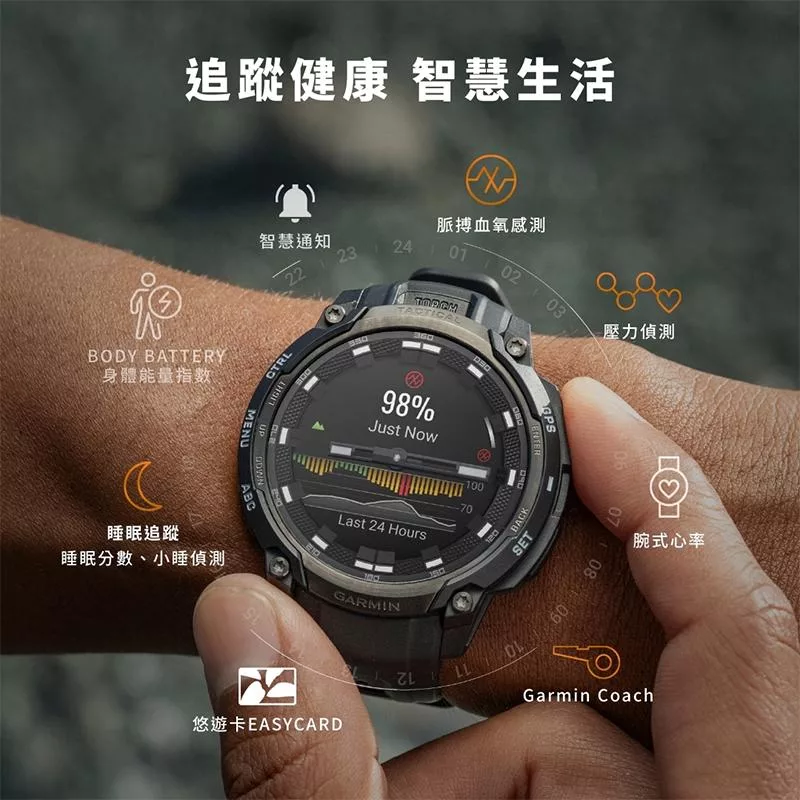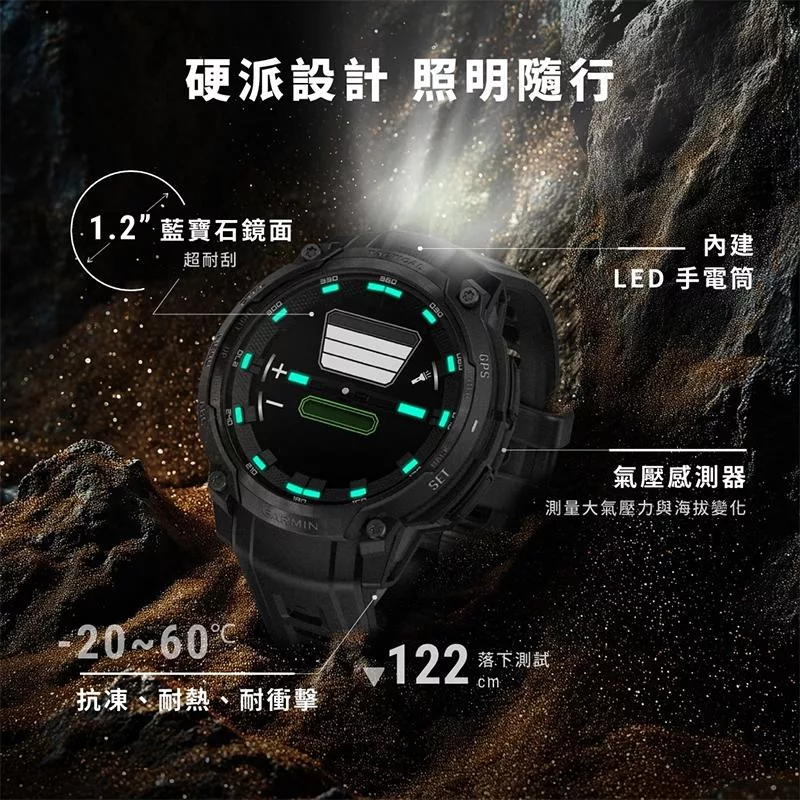 GARMIN INSTINCT Crossover AMOLED 實體指針GPS智慧錶 45mm - 軍事戰術版 極致黑