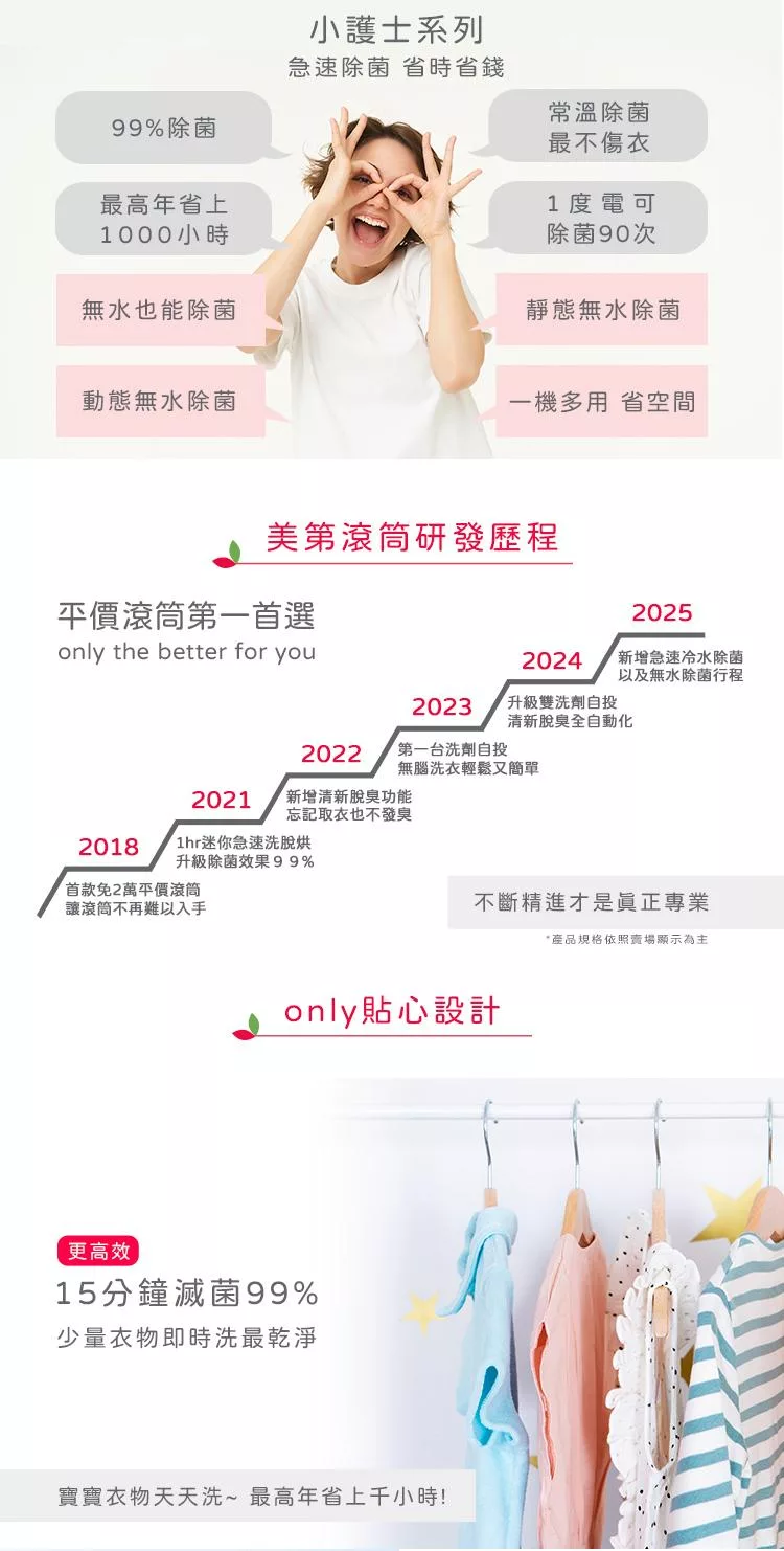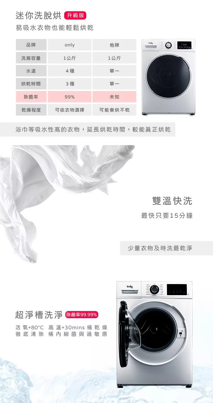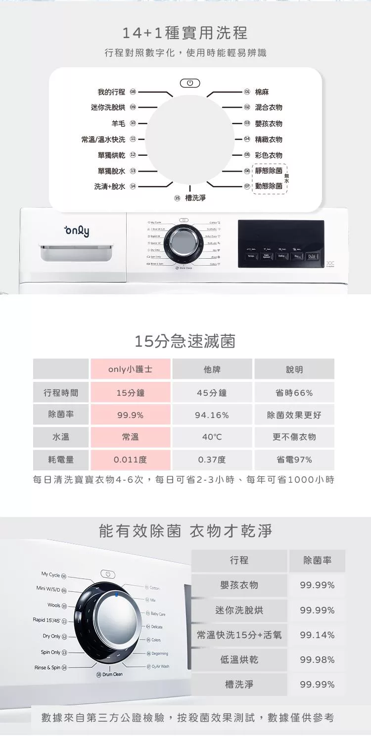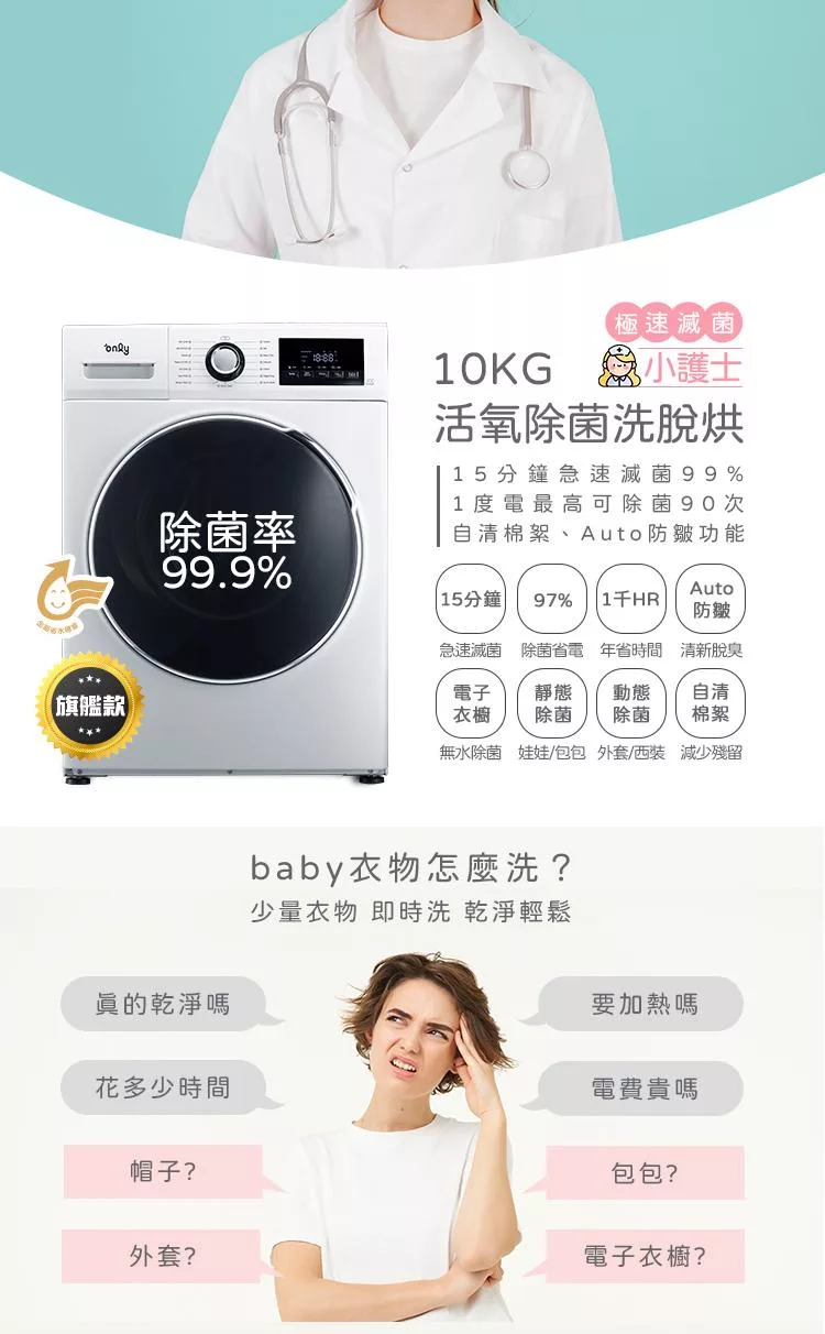1/29保證年前到貨~要買要快 only小護士10kg急速滅菌洗脫烘OF10-W32A(金級省水10公斤變頻蒸氣活氧滾筒洗衣機/電子衣櫥功能)