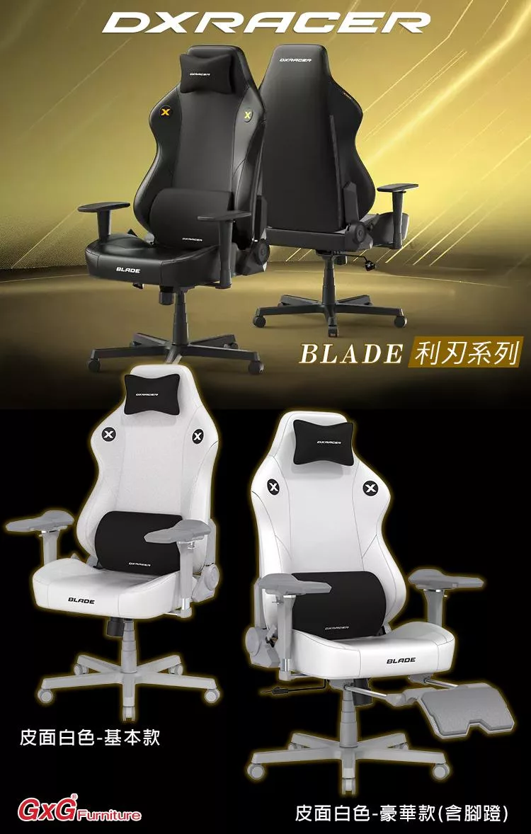DXRACER BLADE 利刃豪華款 電競賽車椅(6D扶手/皮面白色)