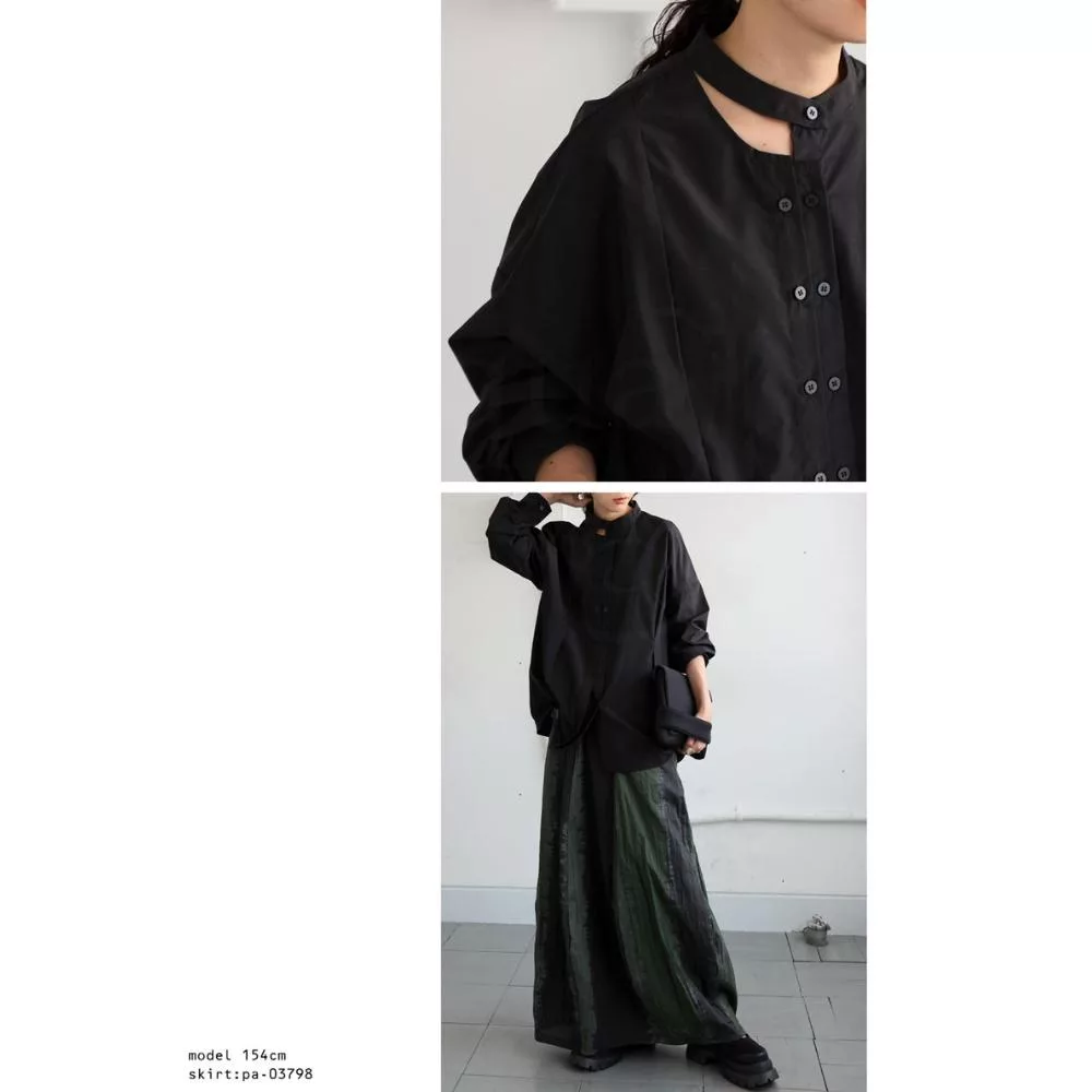 【慢。生活】不對稱設計復古文藝燈籠袖棉麻襯衫 J8952 FREE 深卡色