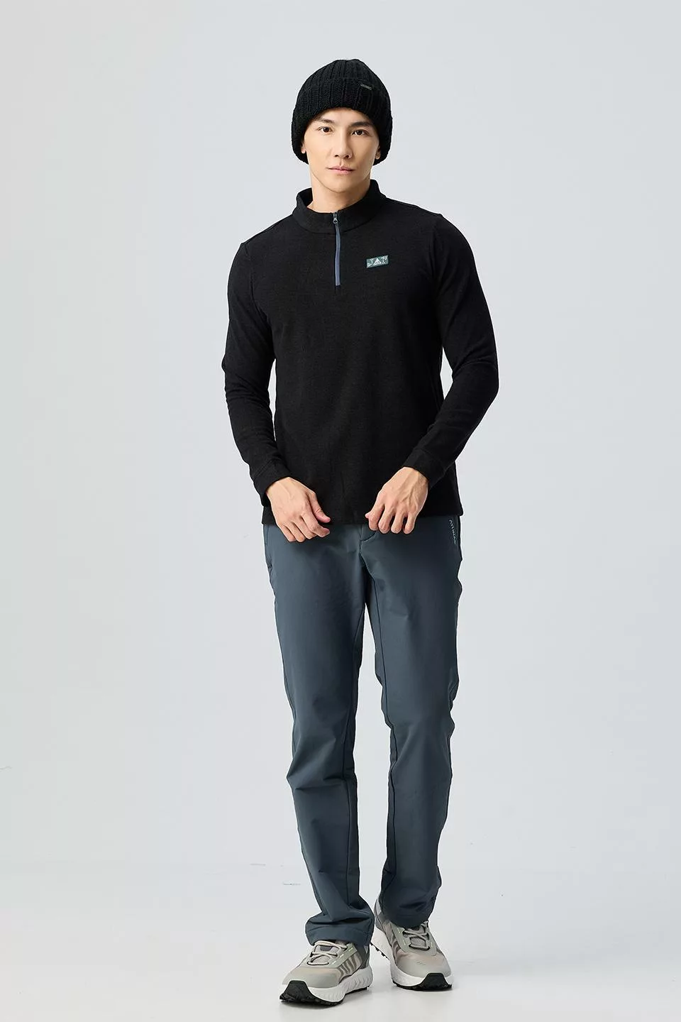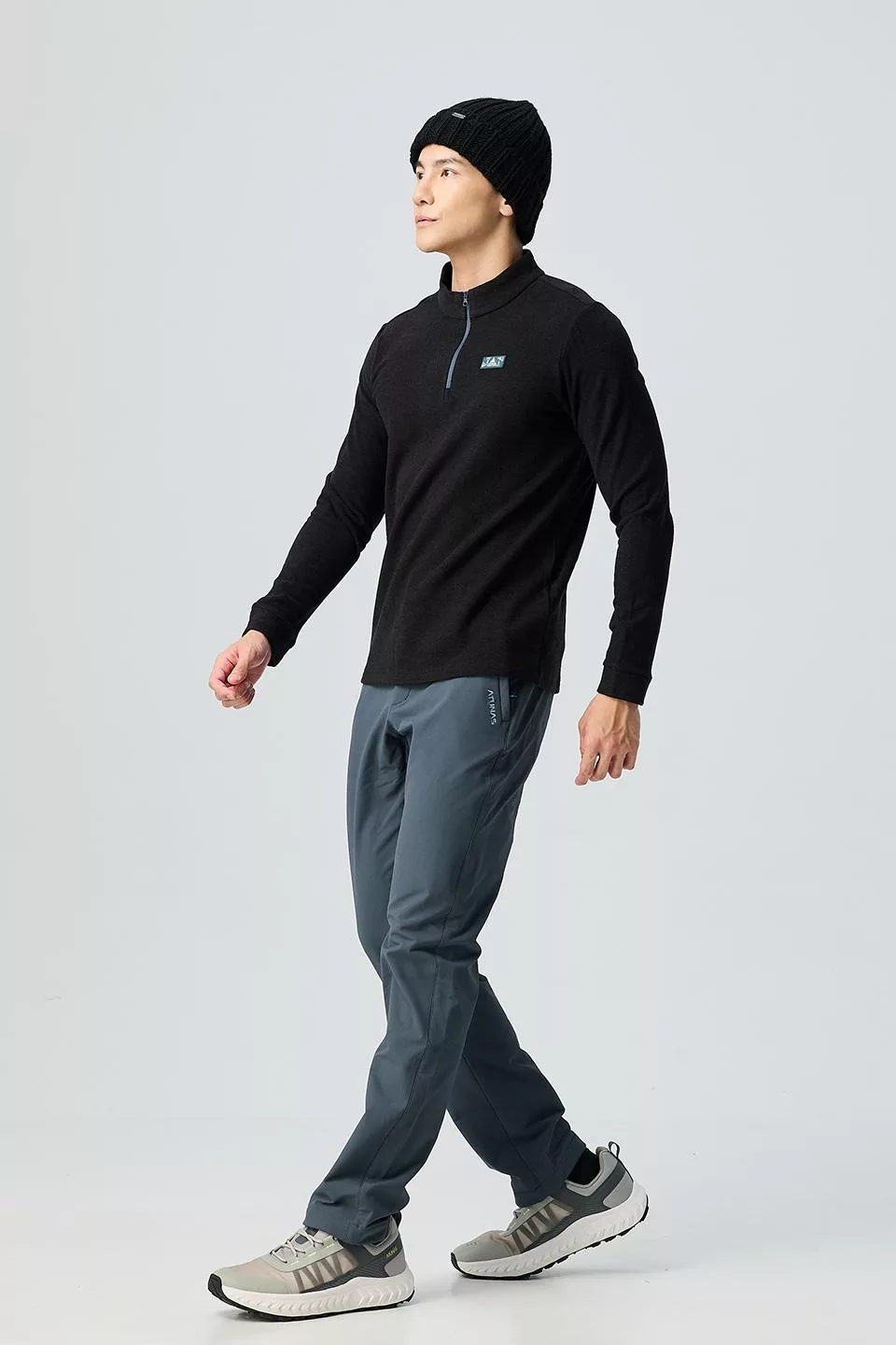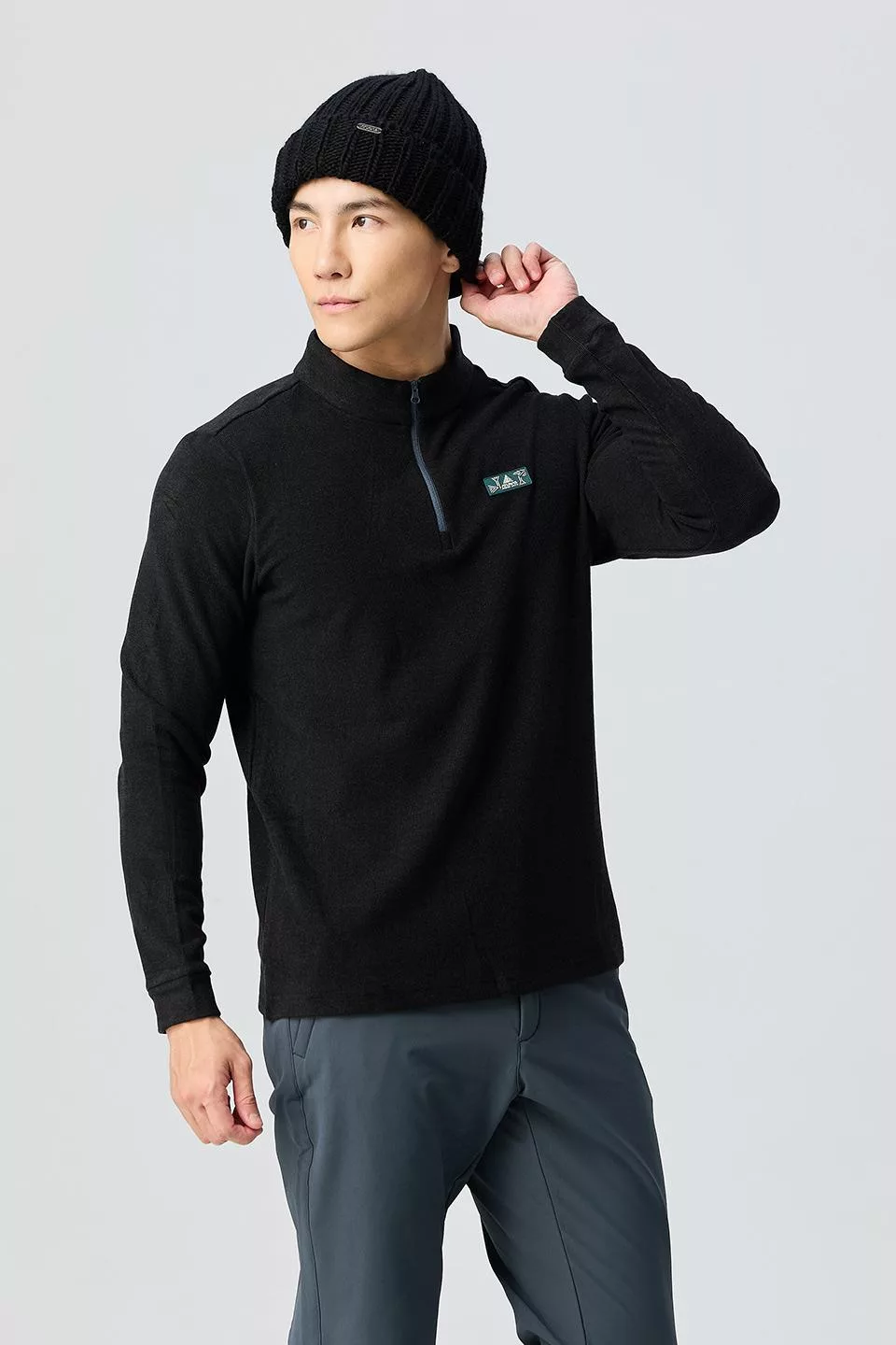 【ATUNAS 歐都納】男款經典保暖長袖拉鍊衫/立領衫/POLO衫/大尺碼A2PS2551M- M 黑