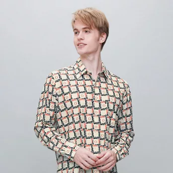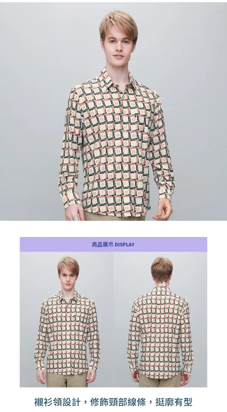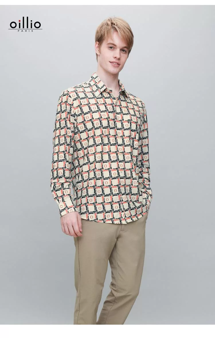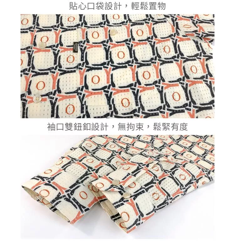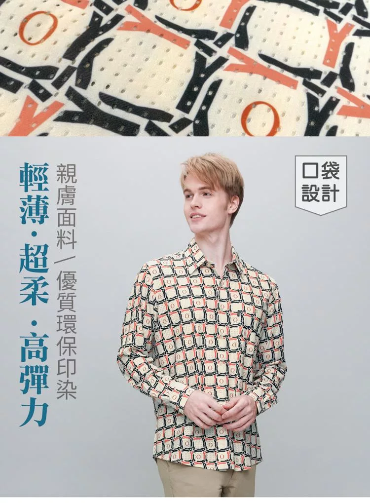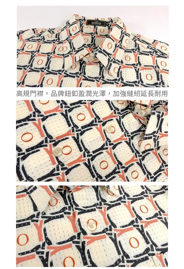 oillio歐洲貴族 長袖商務襯衫 輕薄洞洞超彈力 滿版印染 口袋方便攜物 M 紅色