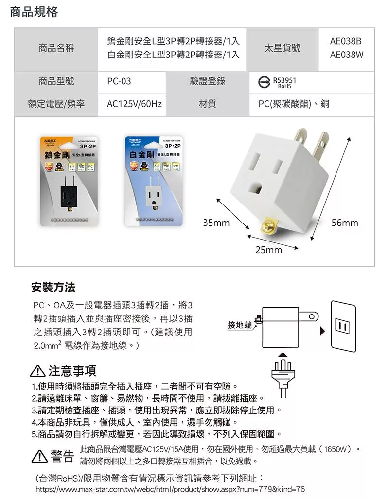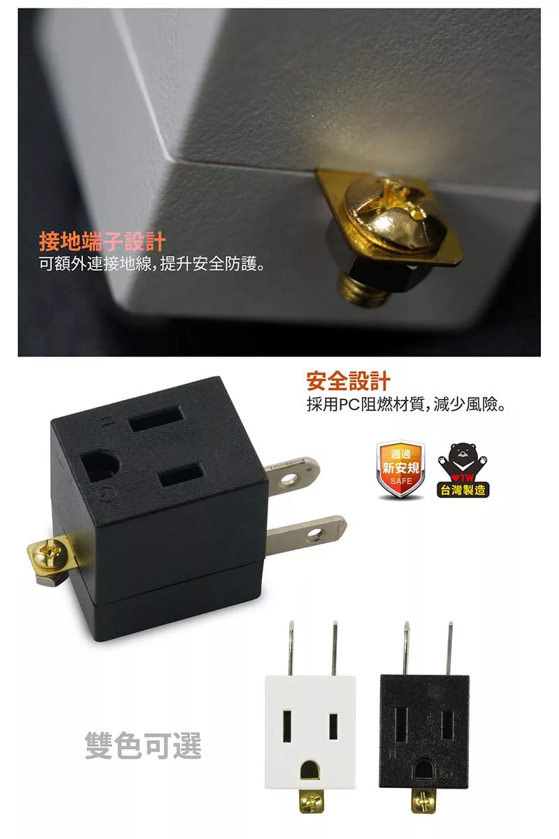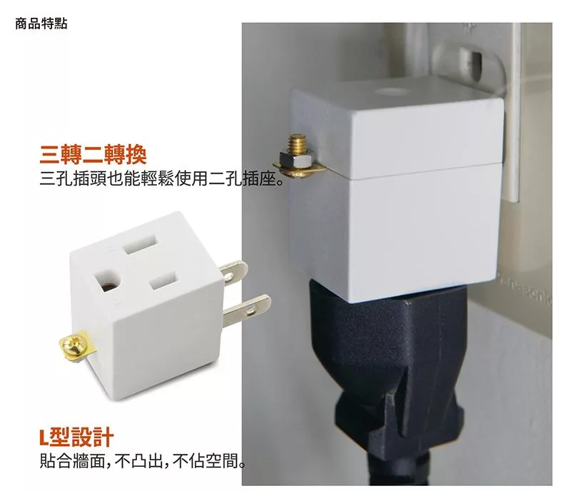3.3P轉2P功能 讓原本3插頭電器,可插入2孔插座上。